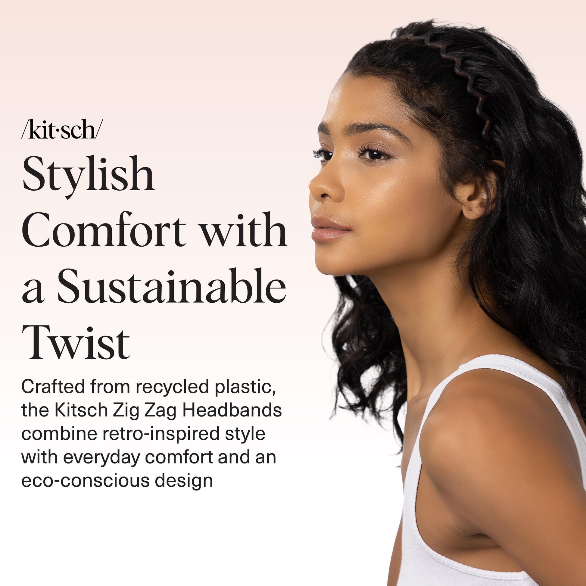 Kitsch Zig Zag Headbands for Women Non Slip – Fashion Accessories for Slicked Back Styles - Comfortable Comb Headband with Teeth - Recycled Plastic Tortoise & Black Headband - 2 pcs