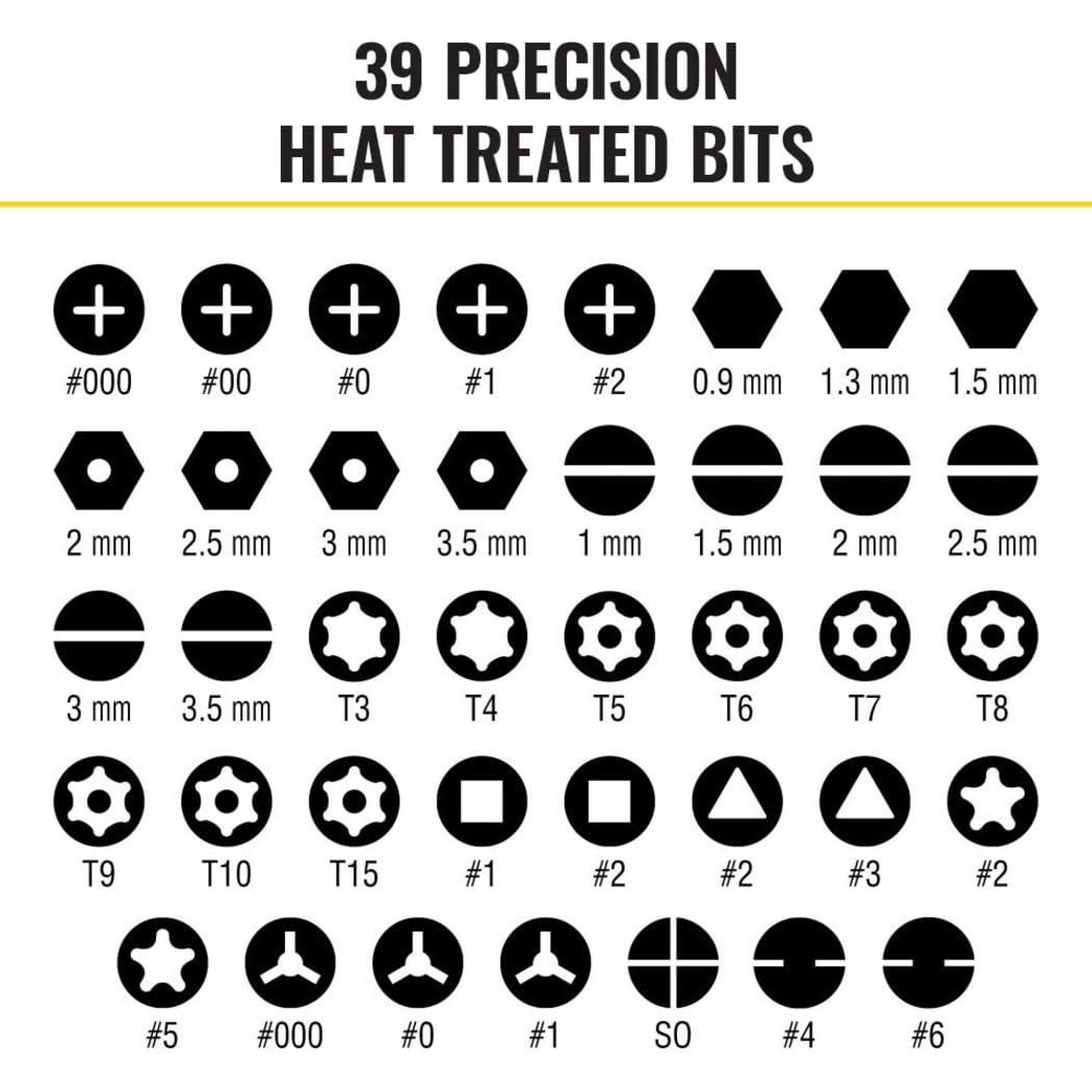 • VERSATILE PRECISION SET: Includes 39 bits, perfect for repairing various Apple products and working with precision fasteners