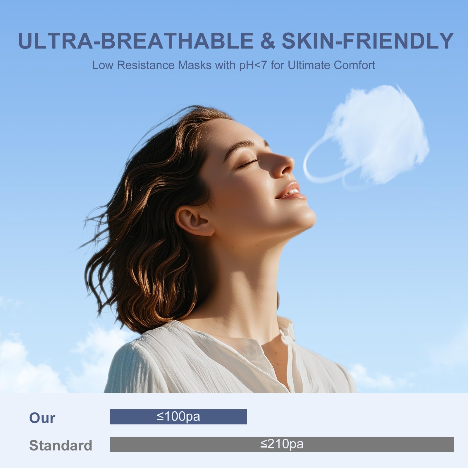 • Lightweight & Foldable: Each box contains 100 individually packaged masks, ensuring cleanliness and hygiene. Latex-free and breathable, these masks offer a comfortable fit for easier breathing and wear.