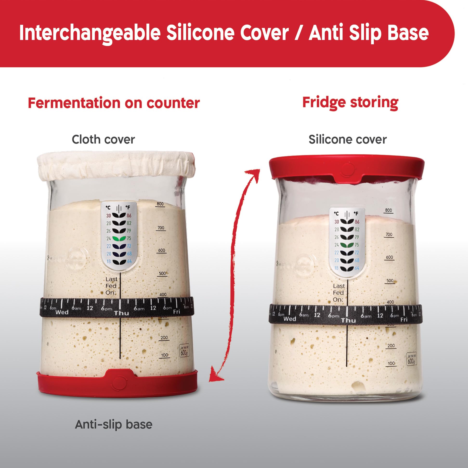 • Experience The Ultimate In Sourdough Care - Our starter kit comes with a silicon cover for fridge storage that doubles as unti-slip base for your kitchen counter during fermentation while using the cloth cover.