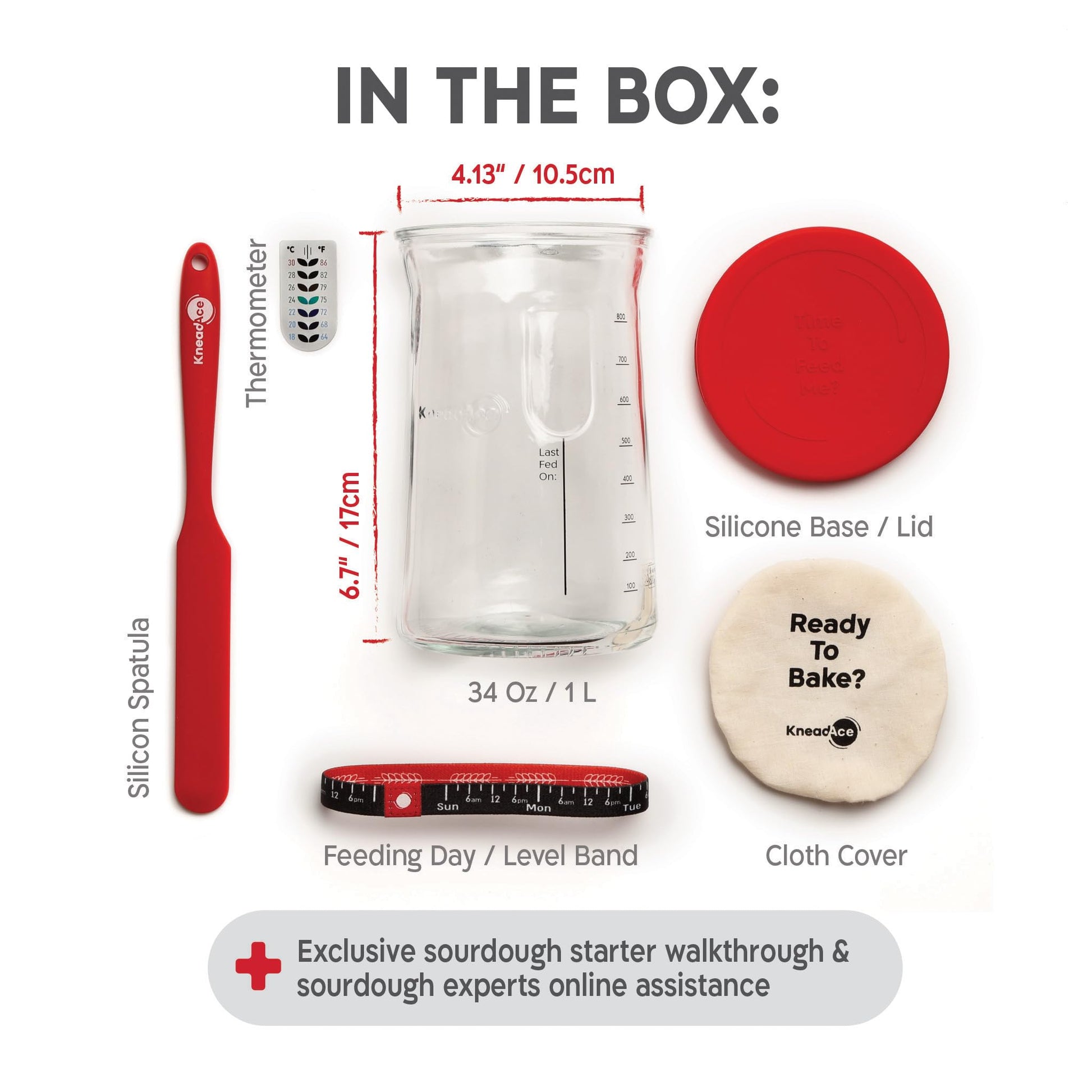 • Essential Addition To Your Bread Making Tools & Supplies - This sourdough jar kit comes complete with volume, net weight & feed line marks, thermometer, cloth cover, silicone cover/base & spatula.