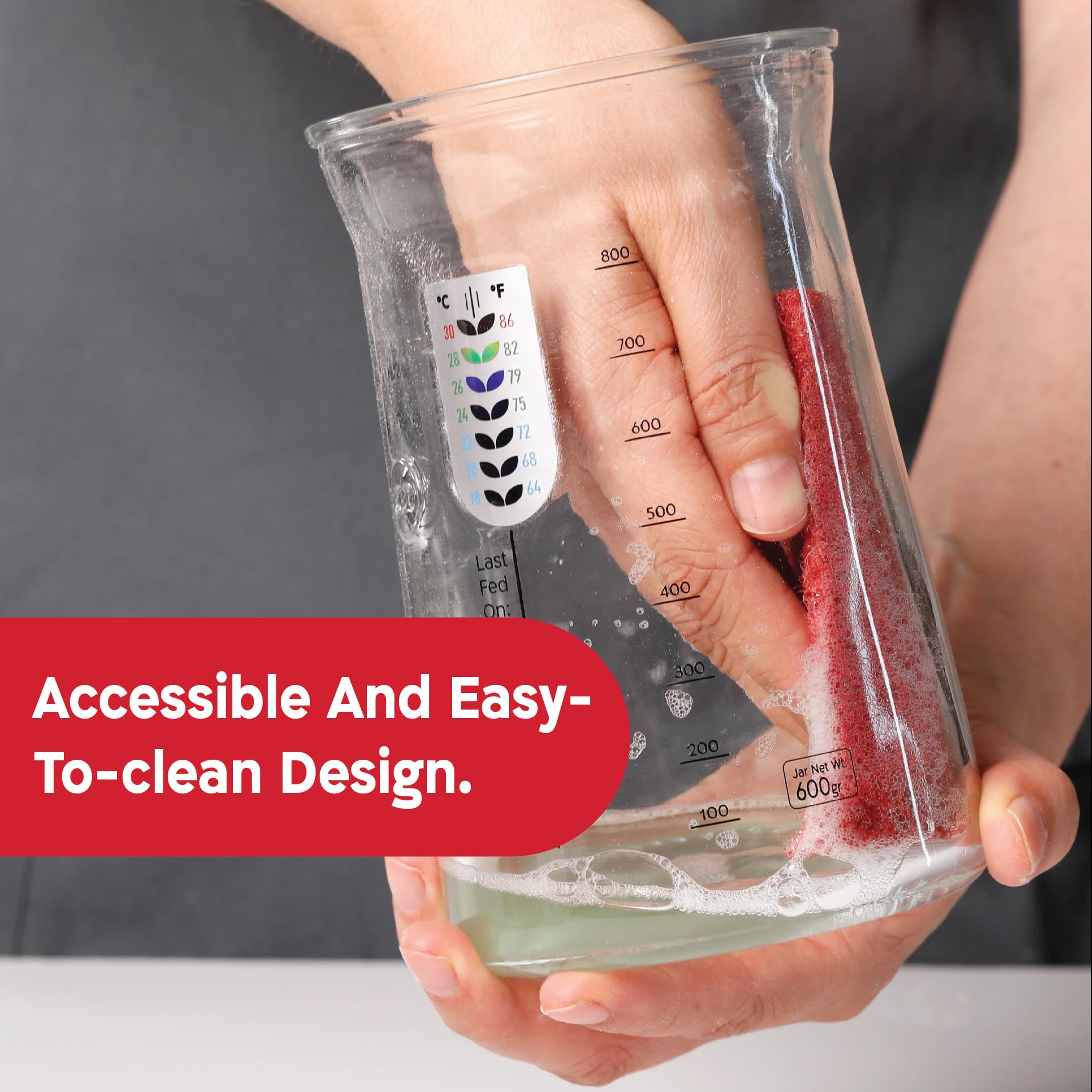 • Discover the Joy of Artisan Sourdough Bread - Exclusive design, molded for optimal sourdough starter maintenance. With its funnel-shaped opening, this sourdough starter jar enables effortless handling.