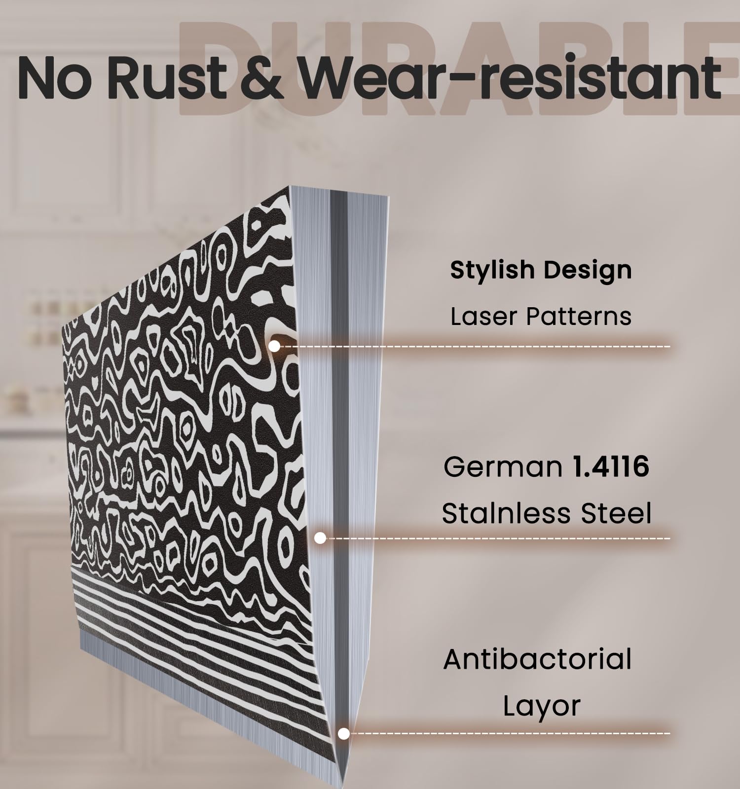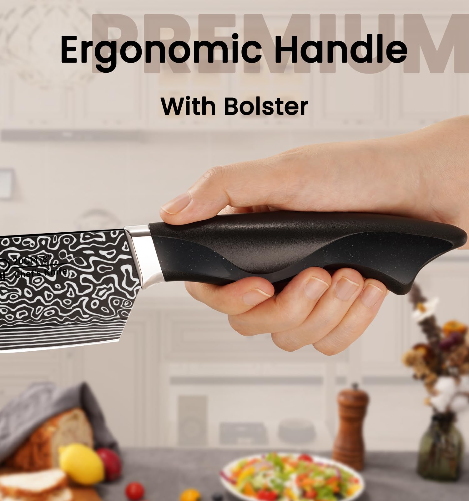 • 【Comfortable and safe handle】 Ergonomic knife handle that perfectly fits any hand shape, designed by the most professional designers. Whether you use it left-handed or right-handed, whether your hand is big or small, holding this knife, you can feel the smoothness and comfort that you have never felt before! Show off your cutting skills, it will be your best partner!