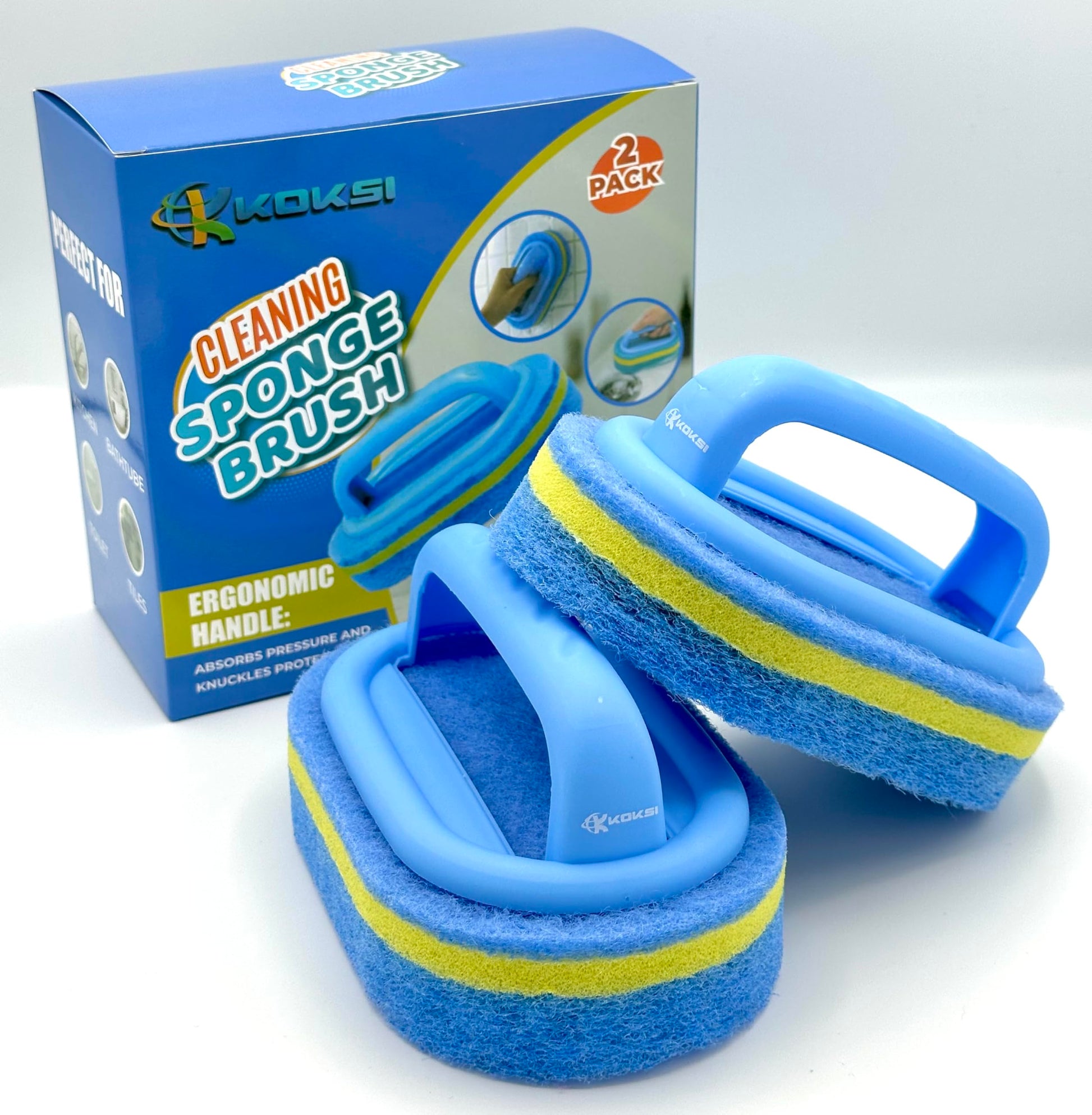 KOKSI 2-Piece Cleaning Brush for Bathroom Kitchen Bathtub Toilet Cleaner All Purpose Shower Sponge Scrubbing Brush with Ergonomic Handle