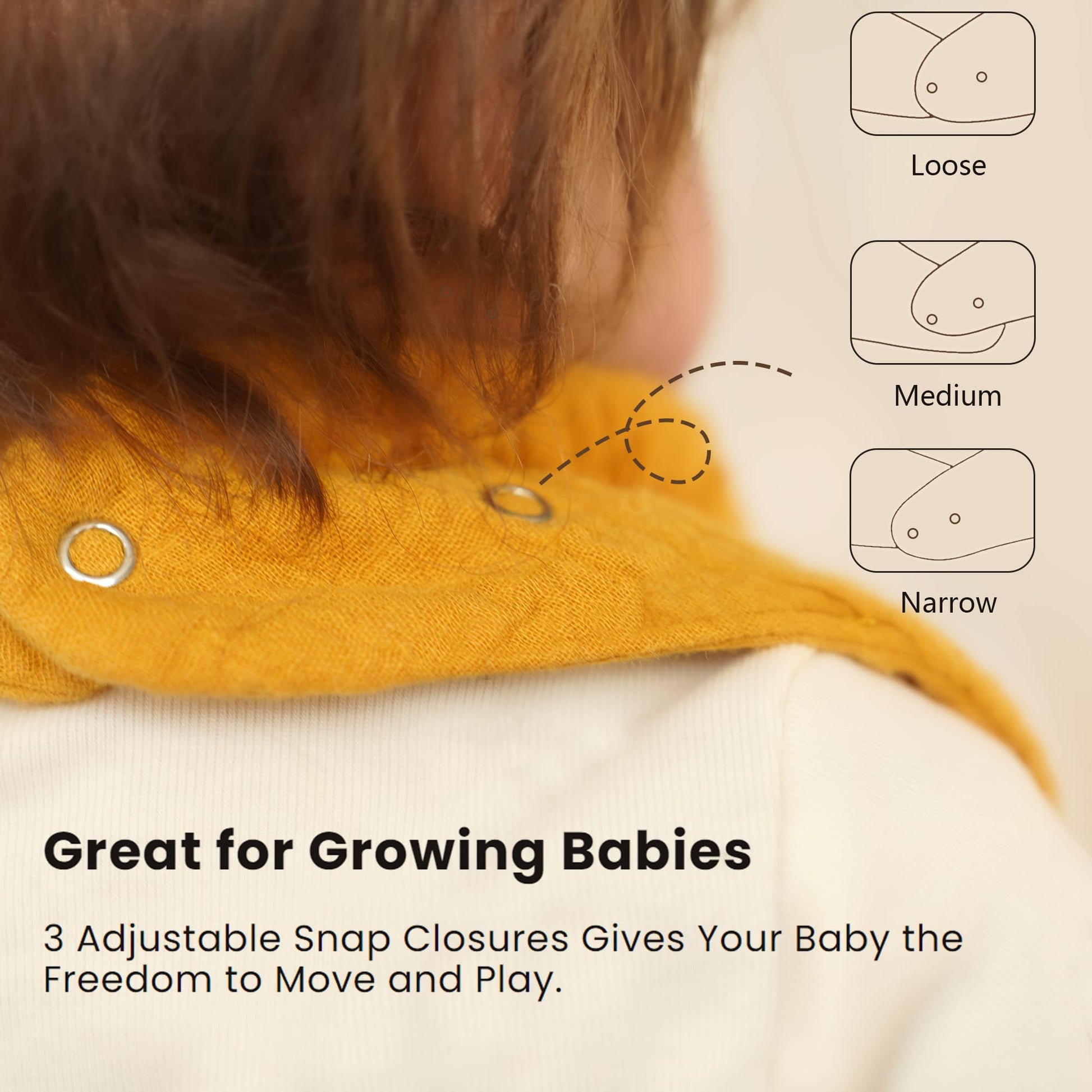 • Soft and Absorbent: These bandana bibs are made of 100% cotton (Muslin) for maximum absorption with skin-friendly soft touch. The bib soaks up all drools and spits to keep you and your baby clean and dry, no more wet clothes