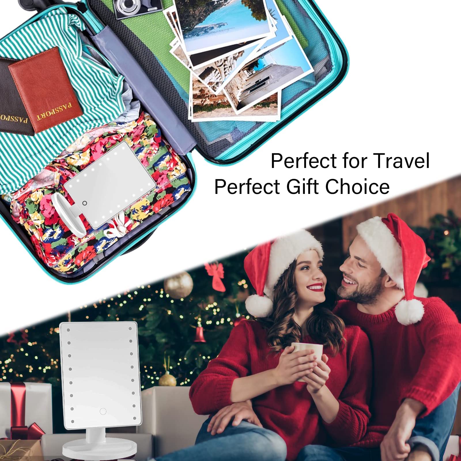 • This travel mirror with lights is 10.5in high and 6.7in wide after installation, compact, portable and lightweight, portability for travel grooming. It is a 1x mirror without magnification