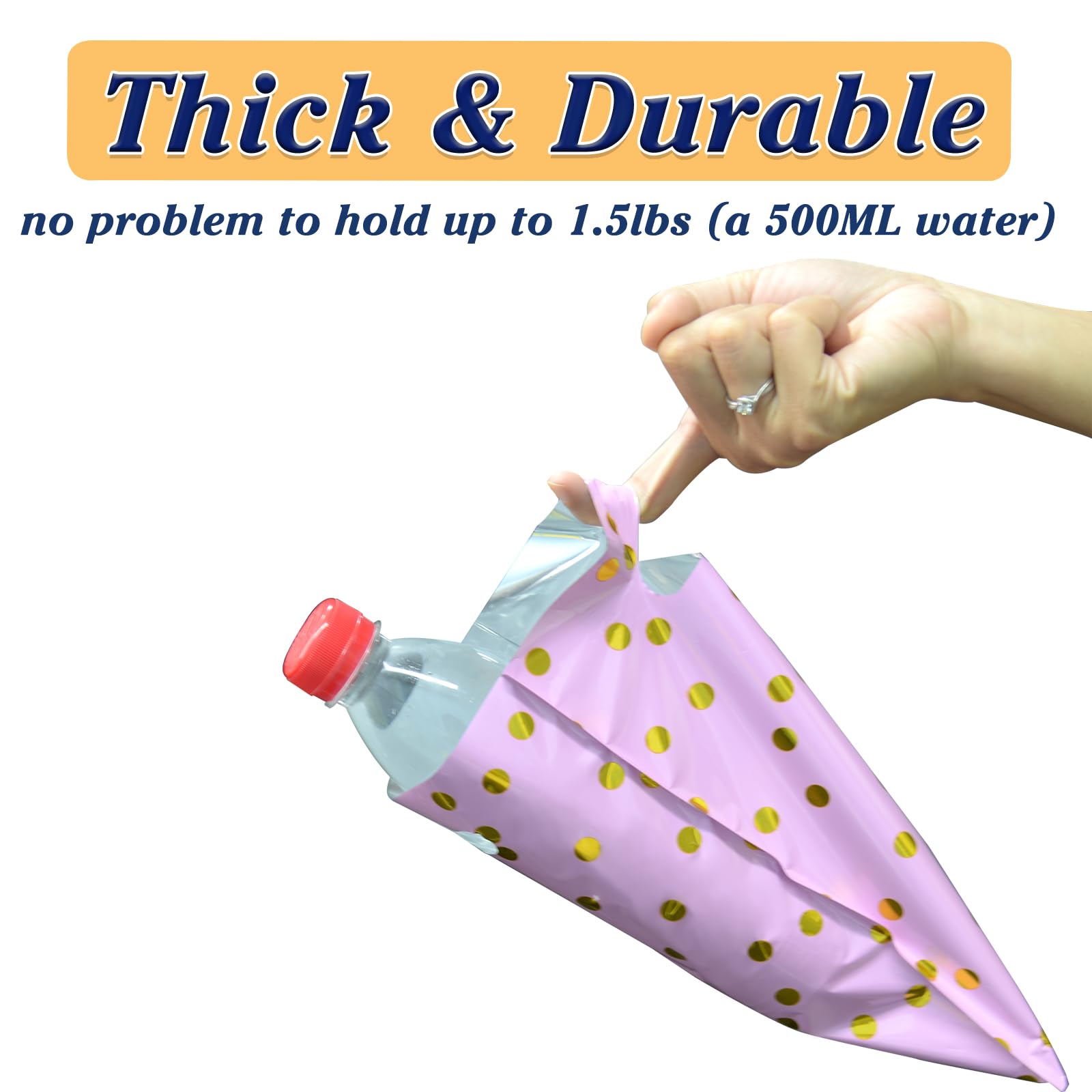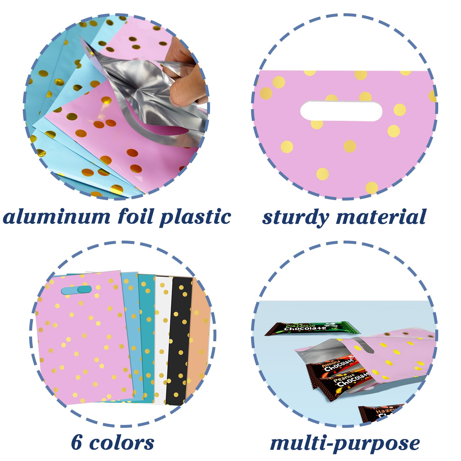 • Delicate Design: The party bags adopt golden dot design, which add a pop of color to your favor giving game. These small party gift bags come with handles, easy for guests to carry