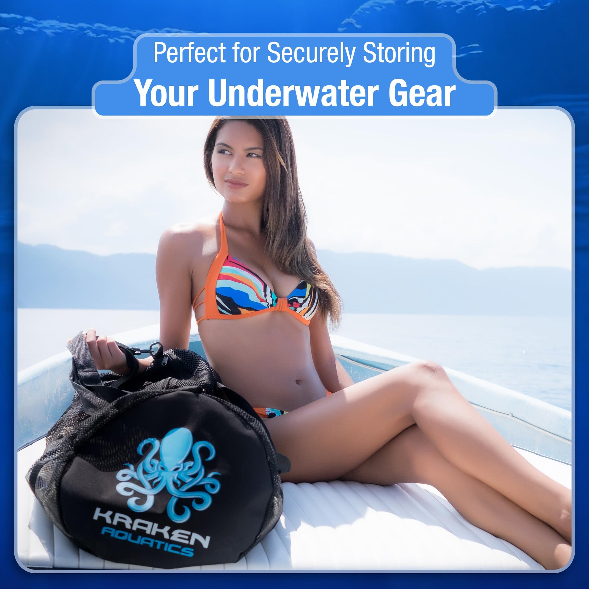 Kraken Aquatics Mesh Duffle Bag with Shoulder Strap | Large Dive Bag for Scuba Diving Gear, Snorkeling, Freediving, Spearfishing, Swimming & Beach | Heavy-Duty Mesh Duffel Bag for Quick Drying | XL