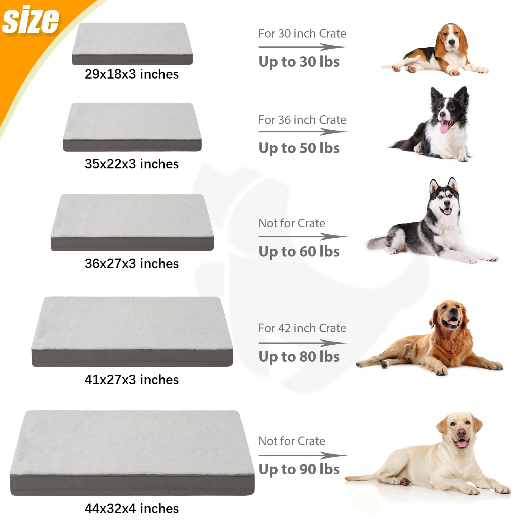 • Size & Using Occasions - This orthopedic dog bed measures 35'L x 22'W x 3'H, for dogs up to 50lbs. It can be used as a dog crate pad, dog pillow, dog mattress, cage bed, crate bed at home, even as a dog travel bed in a car or truck. It arrives as a vacuum-packed bed in a box, so please let it inflate for about 24 hours before using.