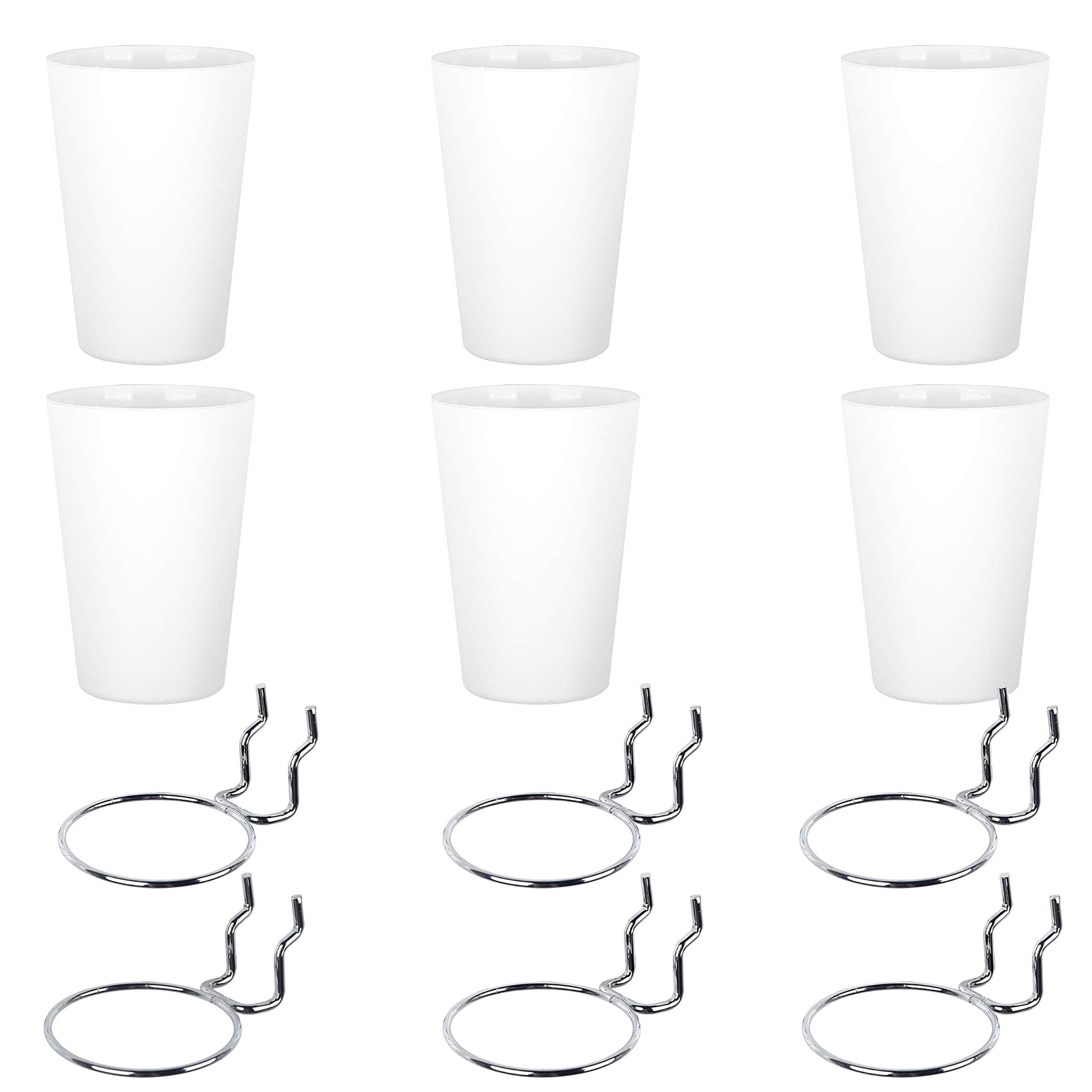 • Package including: 6 pieces white cups, 6 pieces ring style pegboard accessories. Attention! Not including pegboard.