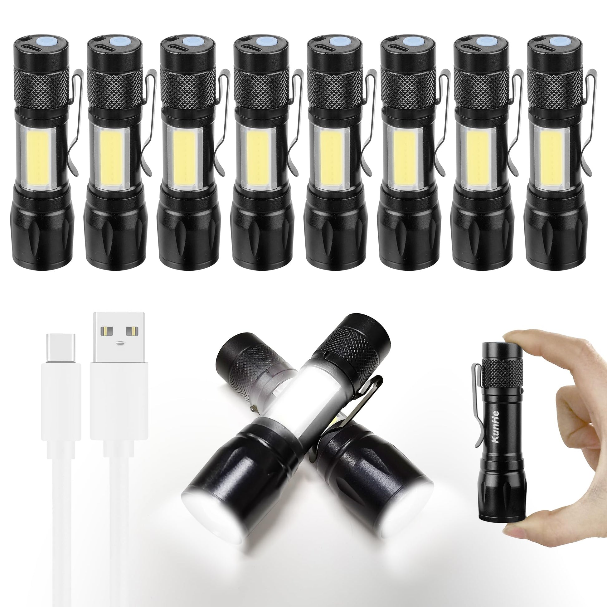 KunHe USB Rechargeable Mini Small LED Flashlights Bulk Camping Lantern Flashlight Bright High Lumens EDC Flash Light 10 Pack
