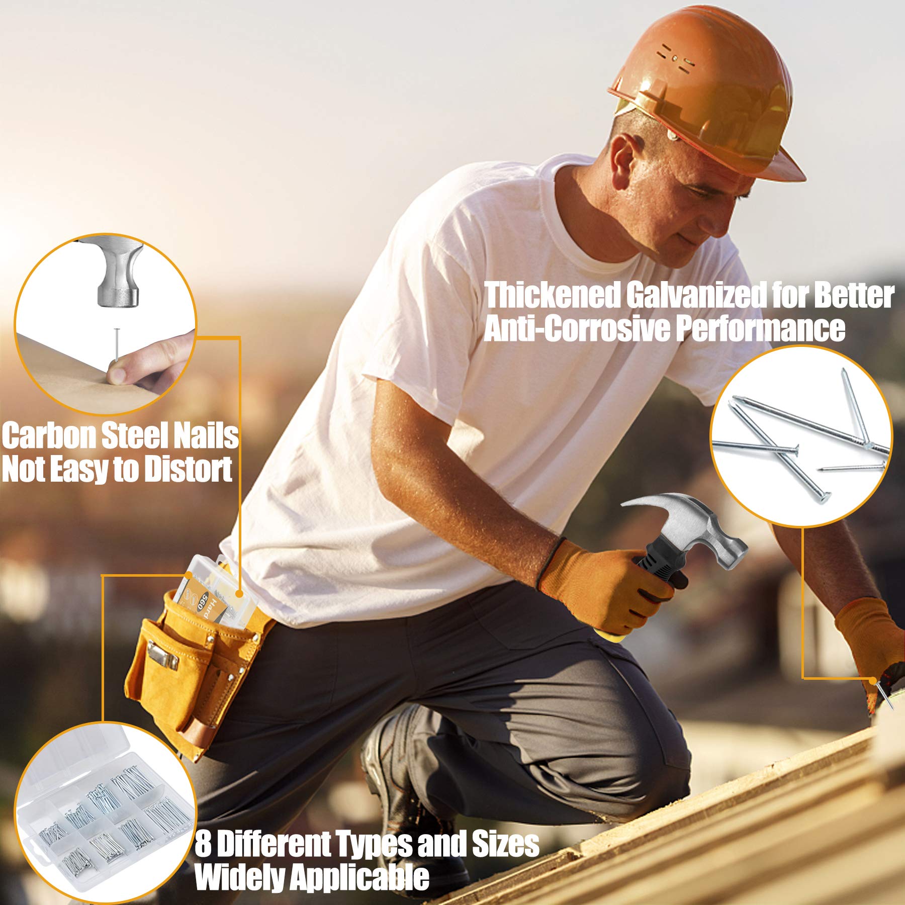 KURUI 700PCs Small Nails for Hanging Pictures & 8oz Small Hammer, Mini Hammer for Hanging Wall Decor, 280 Roofing/Wall Nails & 280 Finishing Nail, Picture Hangers Assortment Kit
