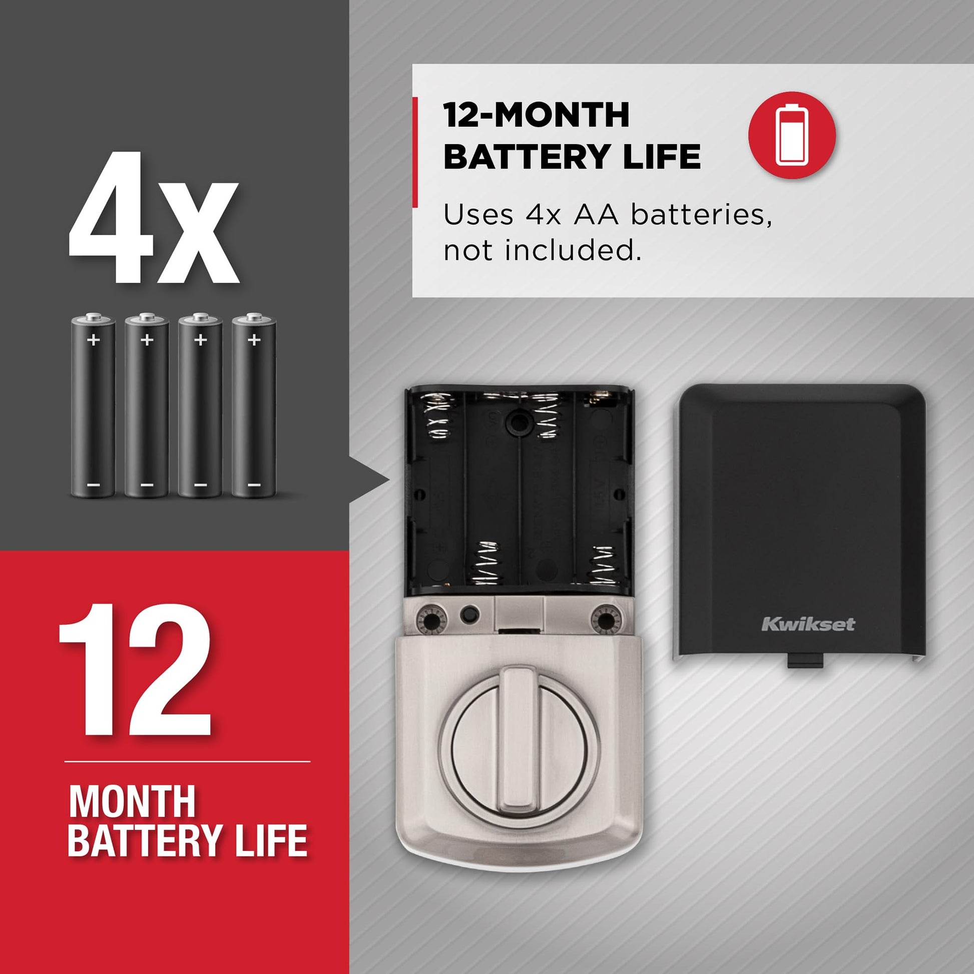 • 12-MONTH BATTERY LIFE: Battery lasts at least 12 months, giving you more time in between battery replacements. Uses 4x AA alkaline batteries (batteries not included) lock yourself in seconds