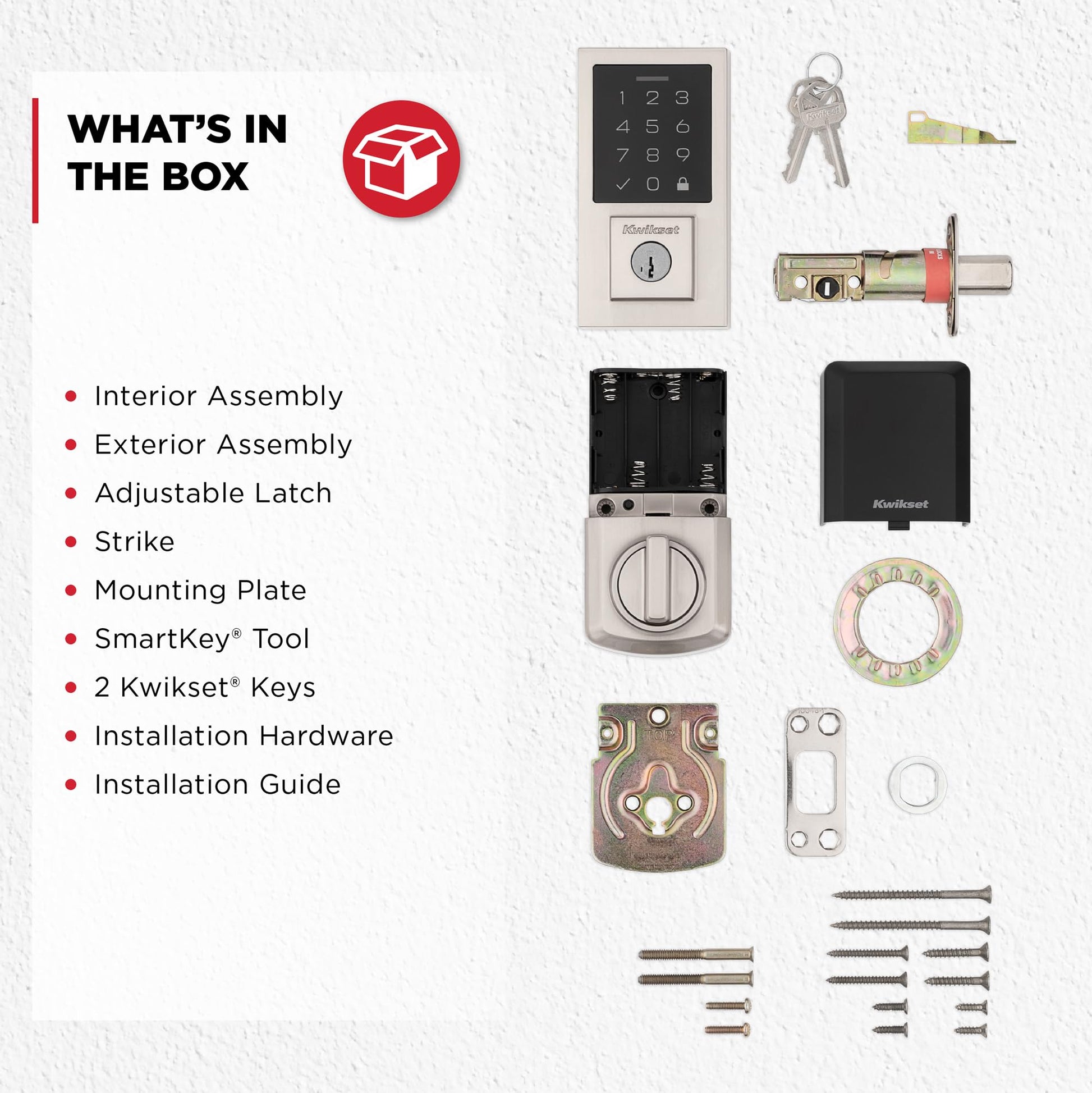 Details: Upgrade to keyless convenience and advanced security with the Kwikset SmartCode 270 Electronic Door Lock. The light-up touchpad and 50 customizable user codes simplify entry for you, your family and trusted guests. With a Grade 2 BHMA certification, it delivers reliable security and functionality, withstands the elements and is up to 2.5 times stronger than Grade 3 locks. Enjoy peace of mind with customizable, automatic locking and an easy installation that only requires a screwdriver.