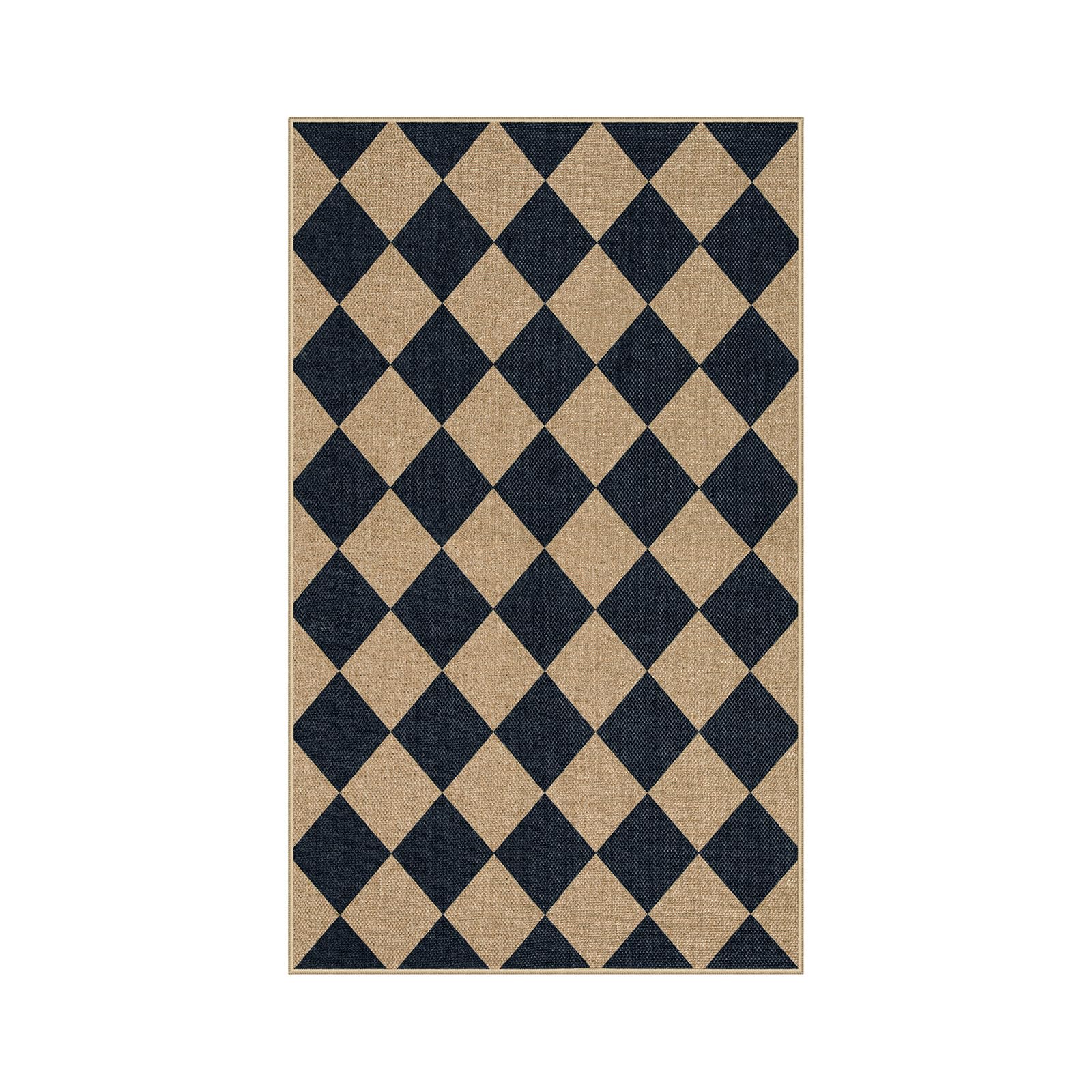 Lahome Checkered Easy Jute 3x5 Outdoor Patio Rug, Washable Rugs for Entryway Diamond Indoor Outdoor Living Room Carpet, Farmhouse Neutral Non Slip Black Door Carpet for Backyard Bedroom
