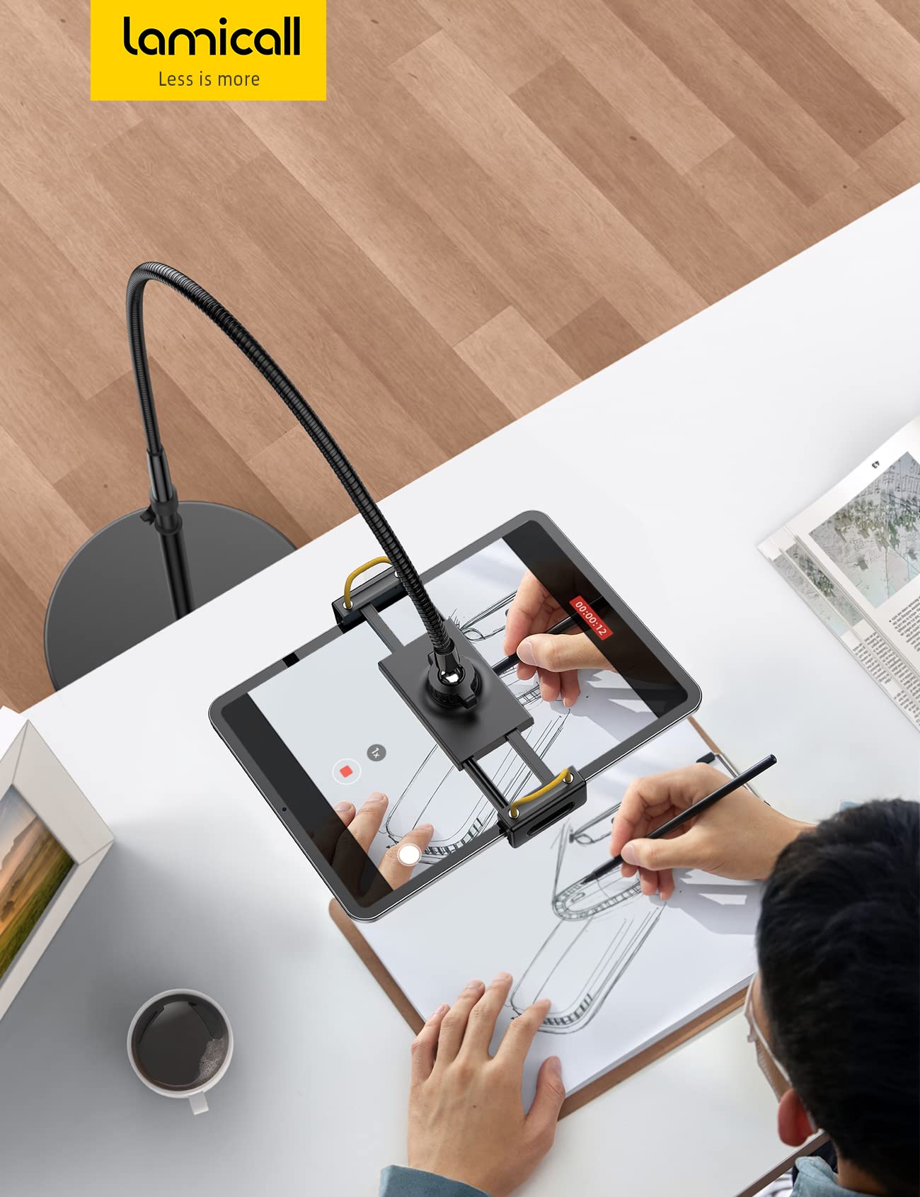 Lamicall Tablet Floor Stand Holder - Gooseneck Tablet Mount for Bed, 63" Adjustable Height & 10.6lb Stable Base, for 4.7-13" Tablets, iPad Pro 13/9.7, Air, Mini, Galaxy Tab, Kindle, Phones