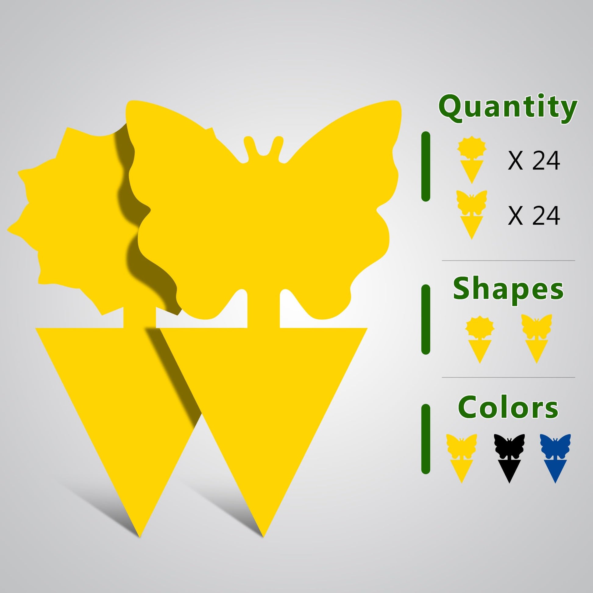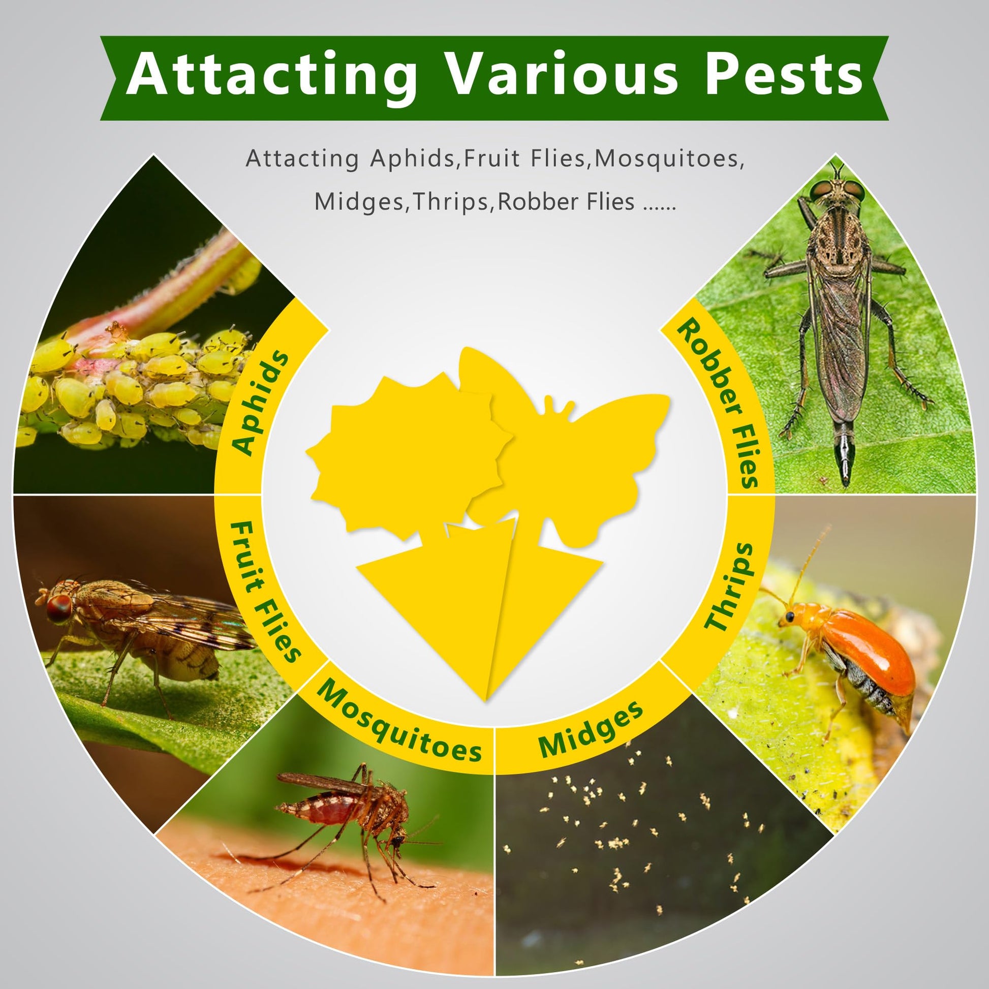 • **Fruit Fly Traps**: Fruit-fly and fungus gnat sticky traps are designed to effectively control and monitor populations of these nuisance pests. The traps utilize a sticky adhesive surface to catch and immobilize flies and gnats, capturing flying insects upon contact, preventing them from further infesting your home or garden.
