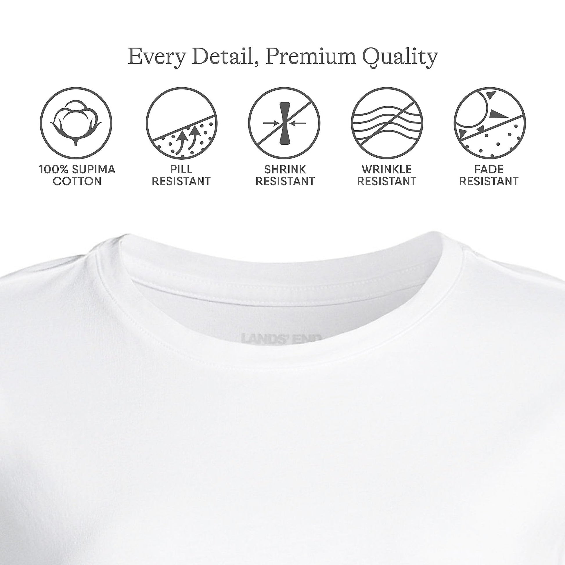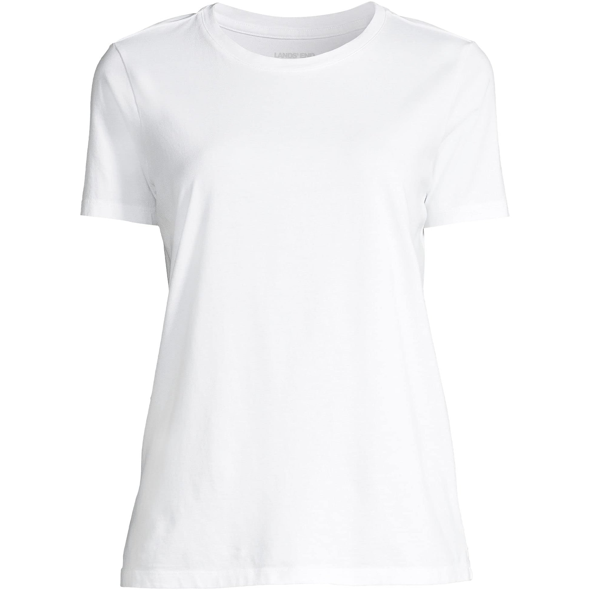 Lands' End Womens Short Sleeve Relaxed Supima Cotton Crew Neck T Shirt White Petite Large