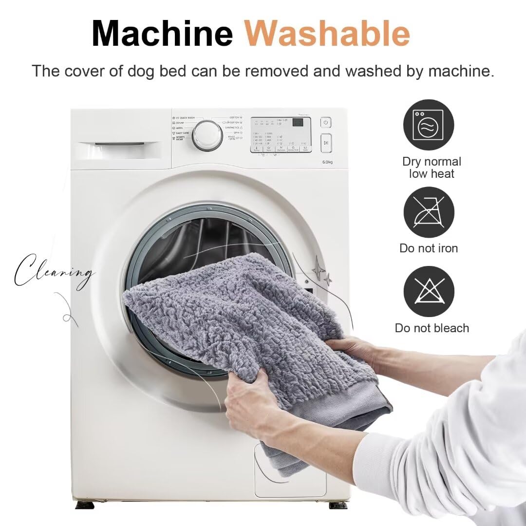 • Care Instruction: Our large dog beds boasts a removable bed cover, there are zippers on the top and bottom which make it easier to assemble or disassemble for quick cleaning and easy care; before putting into washing machine, please make sure the foam and bolster fillings are removed, and the zippers are closed