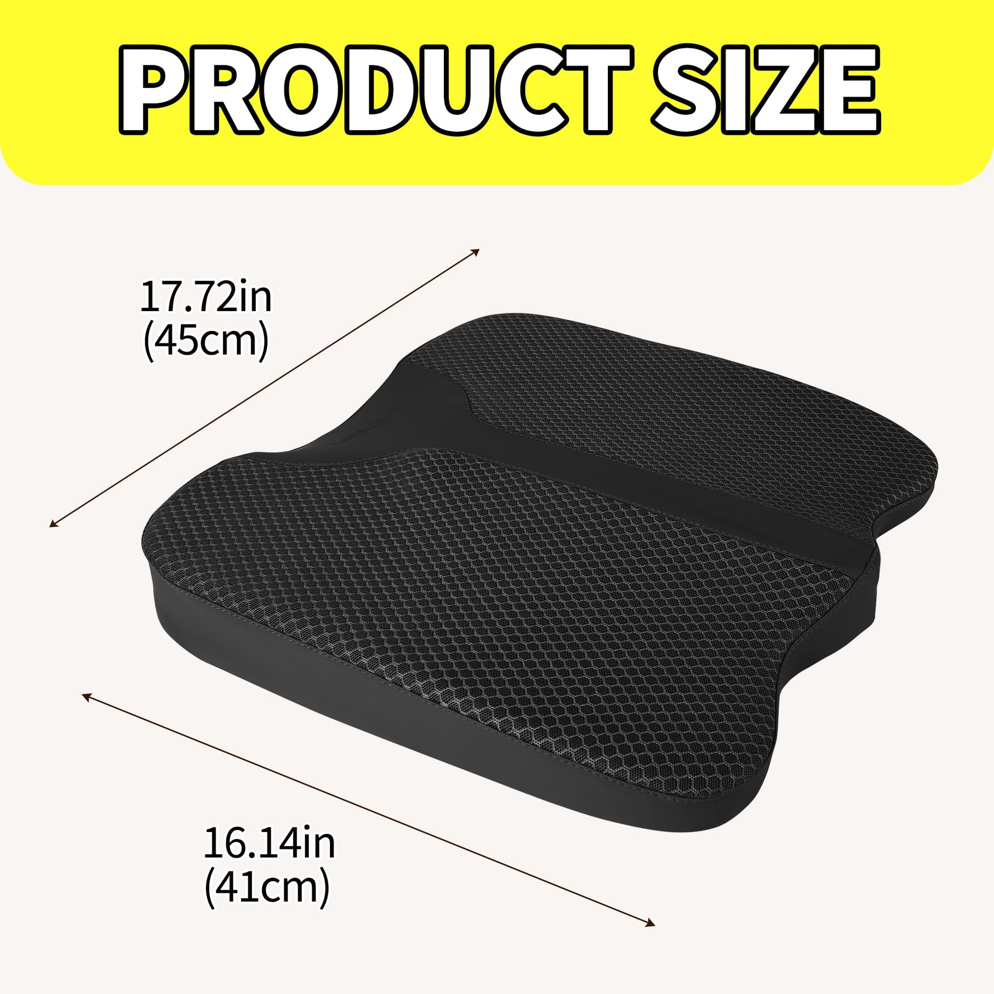 • 【Oversized Design】With a size of 17x18x2 inches, our driver seat cushion effectively increases the height of your car seat. This improves your driving horizon and provides better support for your buttocks. The car cushion ensures that your seat remains flat, keeping you comfortable and safe on the road.
