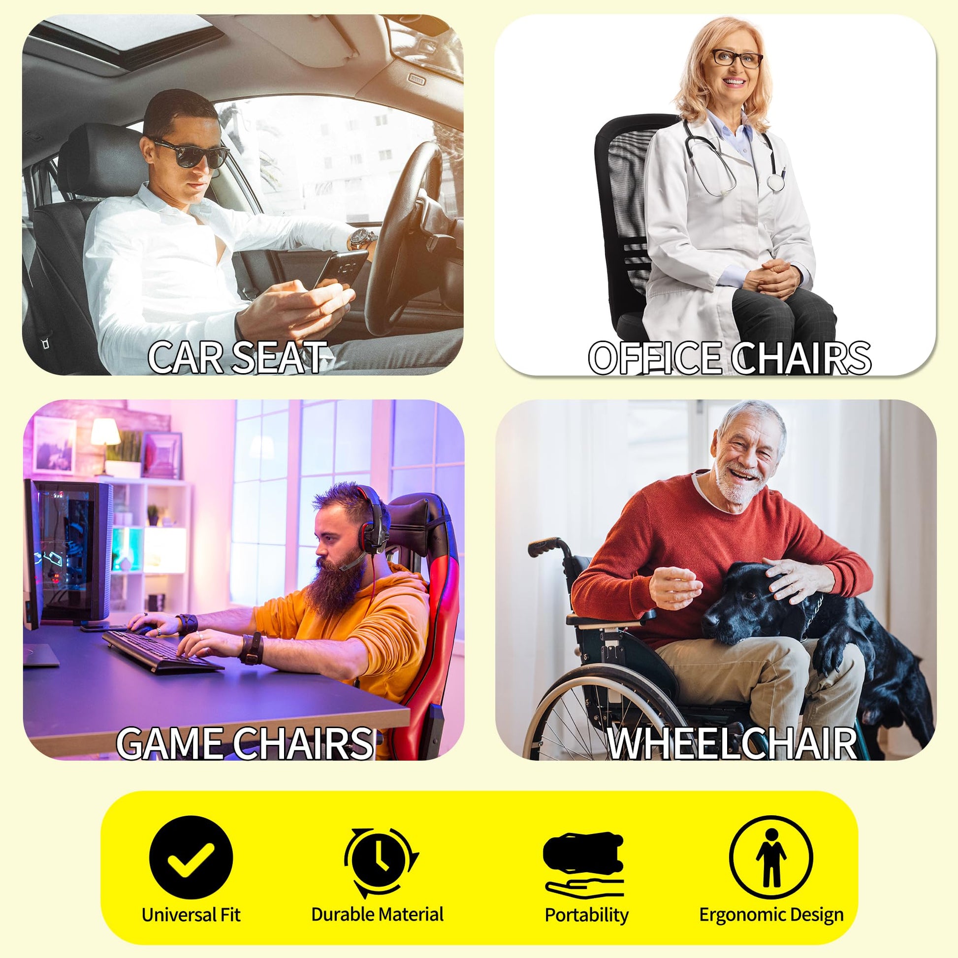 • 【Ergonomic Design】Long-term driving can often lead to back pain. Our car seat cushions for driving are uniquely designed with ergonomics in mind, helping to relieve sciatica and tailbone pain. They effectively reduce leg pain, fatigue, and numbness, making driving a more comfortable experience. They also help alleviate pressure on the tail and sciatica, as well as promote proper sitting posture.