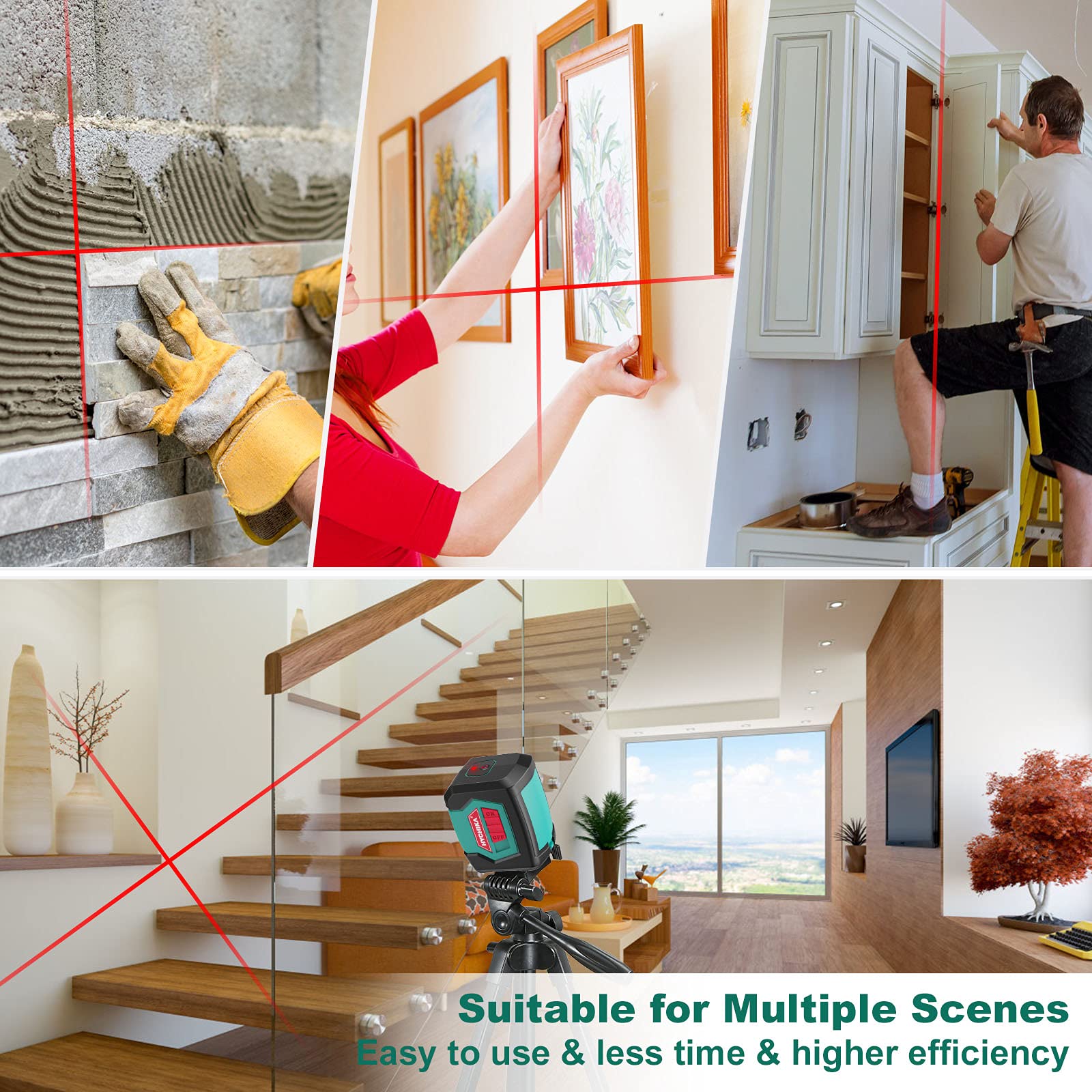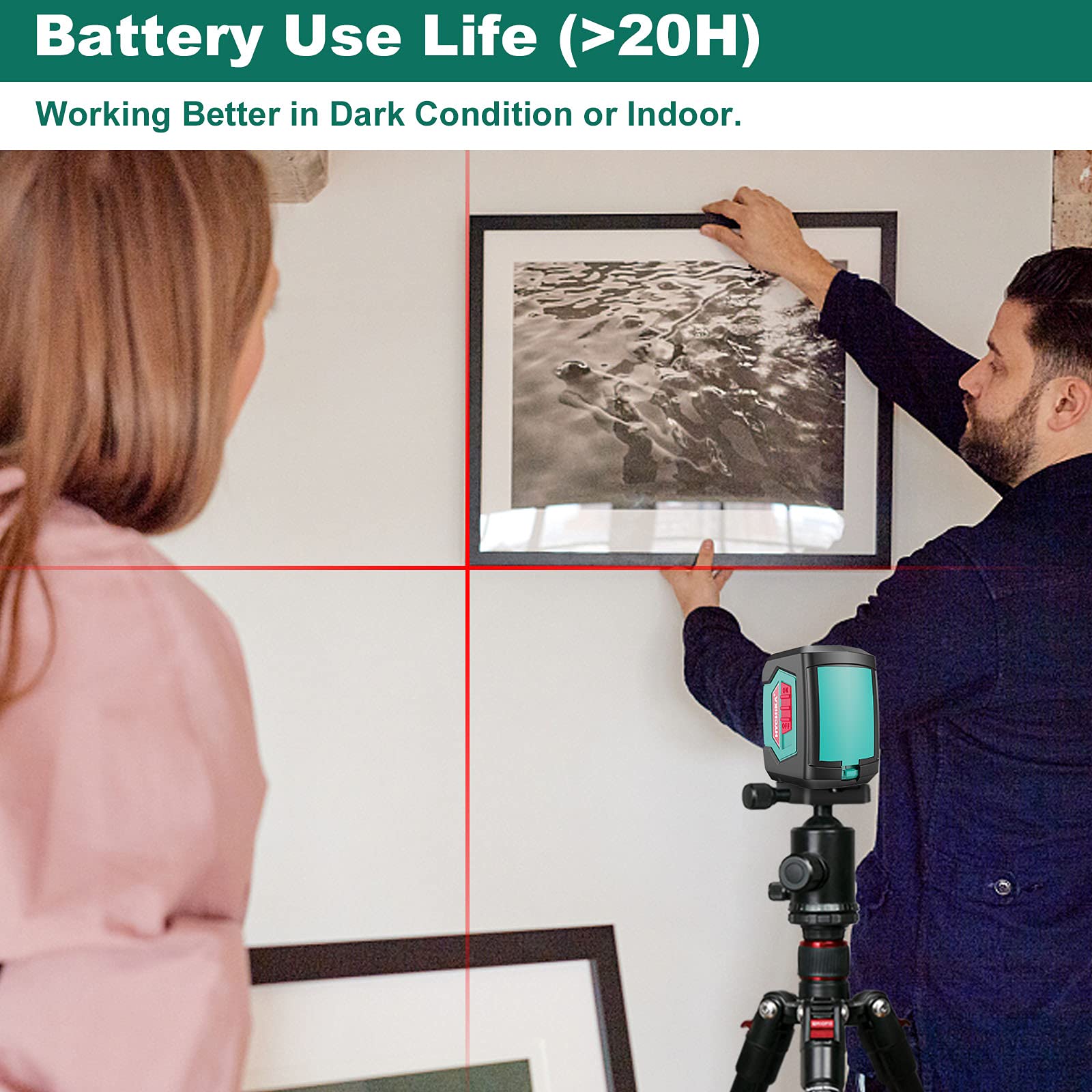 • Flexible Magnetic Support and 20H Battery Life: Our Laser Level line tool can be affixed to most metal surfaces with the magnetic retainer (included) or mounted on a 1/4 ' - 20 tripod (not included) . The line laser can be rotated 360 degrees and one Project red laser cross line at any position or angle. Over 20 hours battery life with continuous use