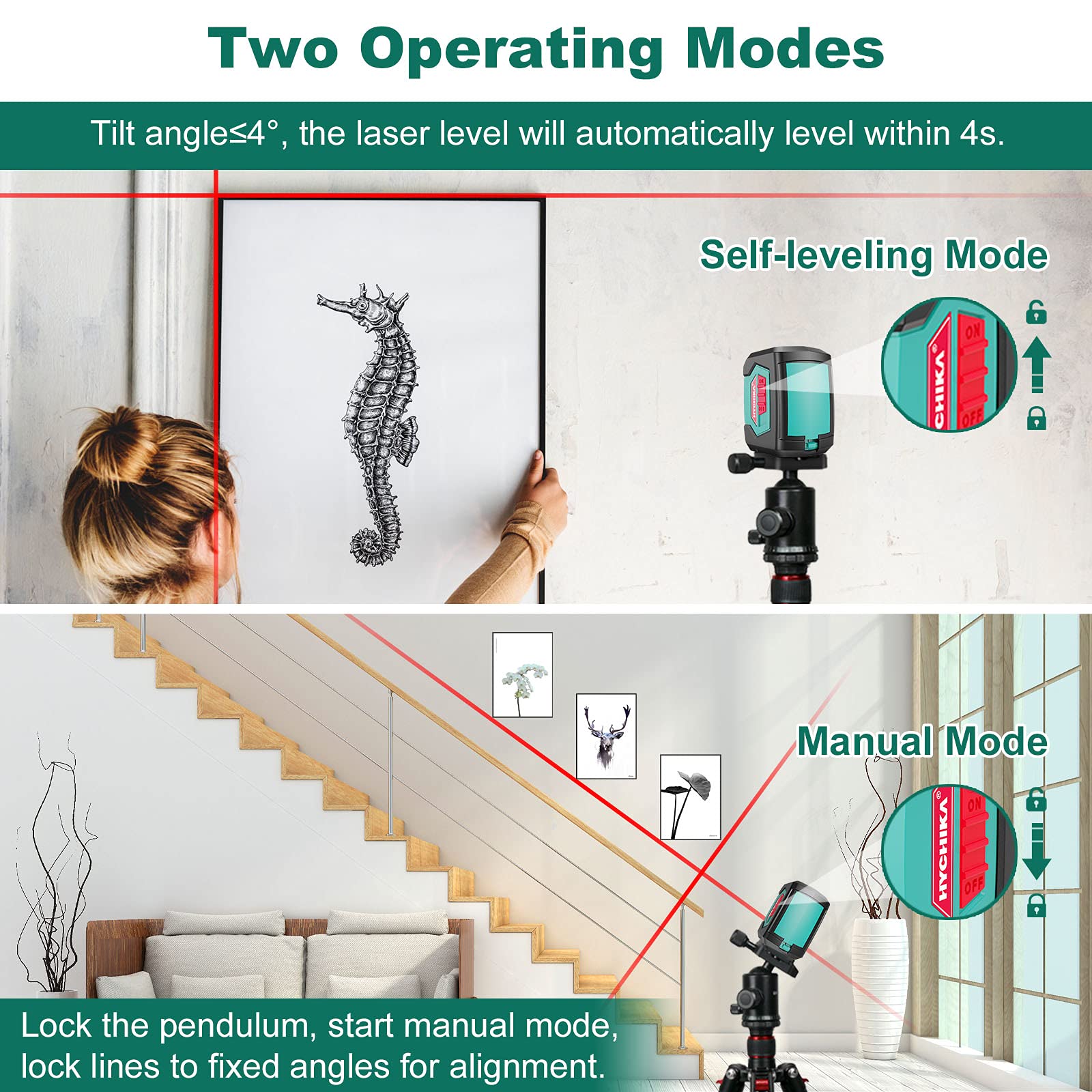 Laser Level, HYCHIKA 50 Feet Cross Line Laser with Dual Modules, Self Leveling Laser Level, Switchable Self-Leveling Vertical and Horizontal Line Construction Picture Hanging, Battery Included