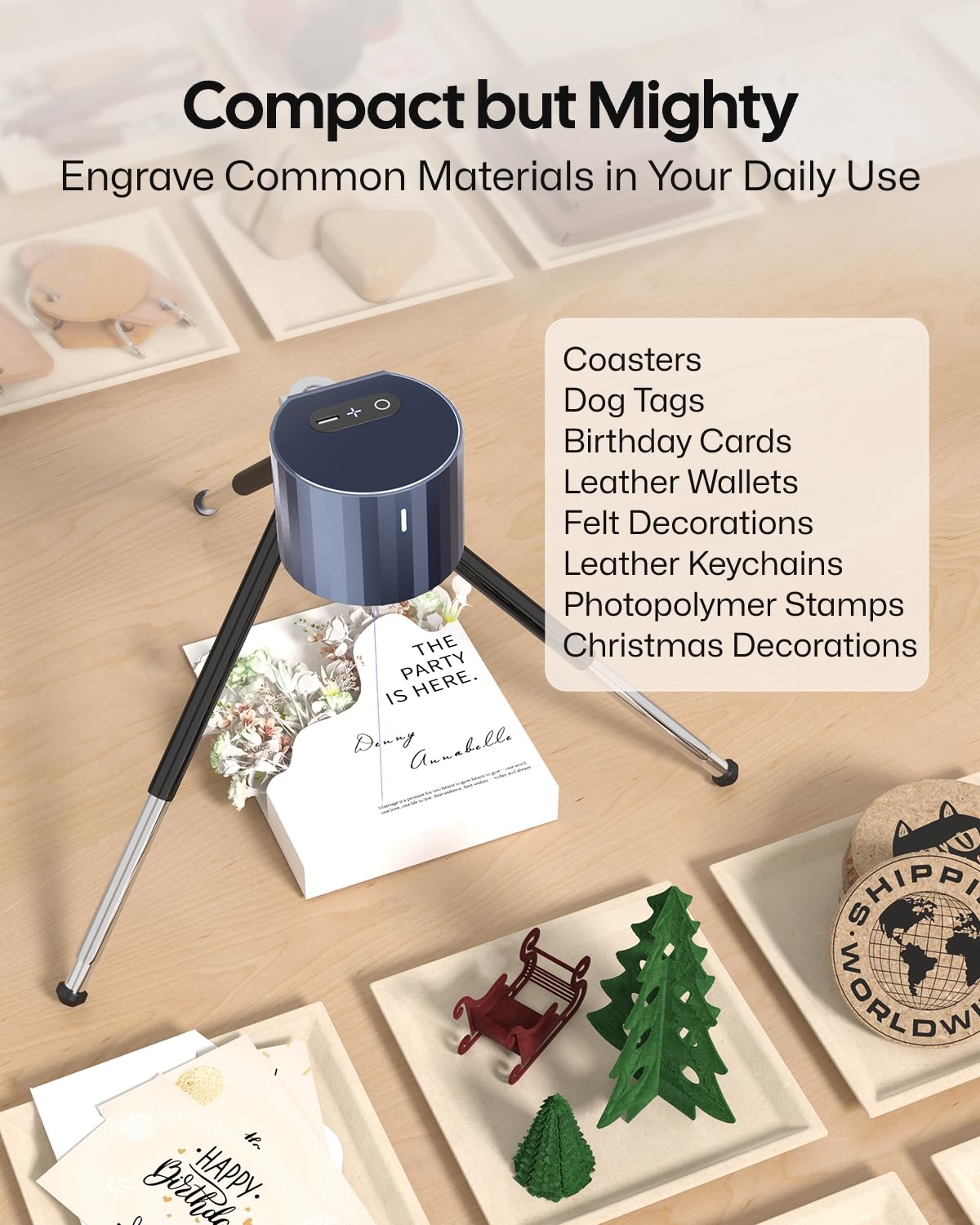 • Palm-Sized Wood Engraver (190g) - USB Powered: 2.56"x2.4"x2" design fits in toolboxes. 5V power bank operation - 89% lighter than desktop engravers. Perfect for DIY workshops and craft markets.