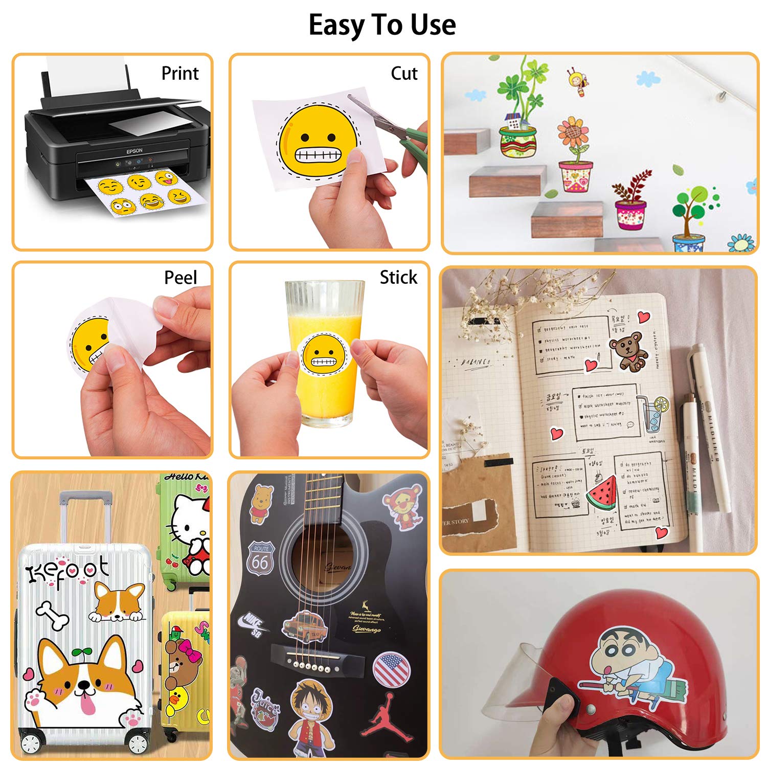 • DYI PERSONALIZED DECAL PAPER: Get creative with your Matte White printer paper! The sticker labels look superb as unique wall murals, vinyl decals for cars, bumper stickers, Matte White vinyl stickers for laptops, on coffee mugs, bottles, but also as a label for business products (not suitable for t-shirts)