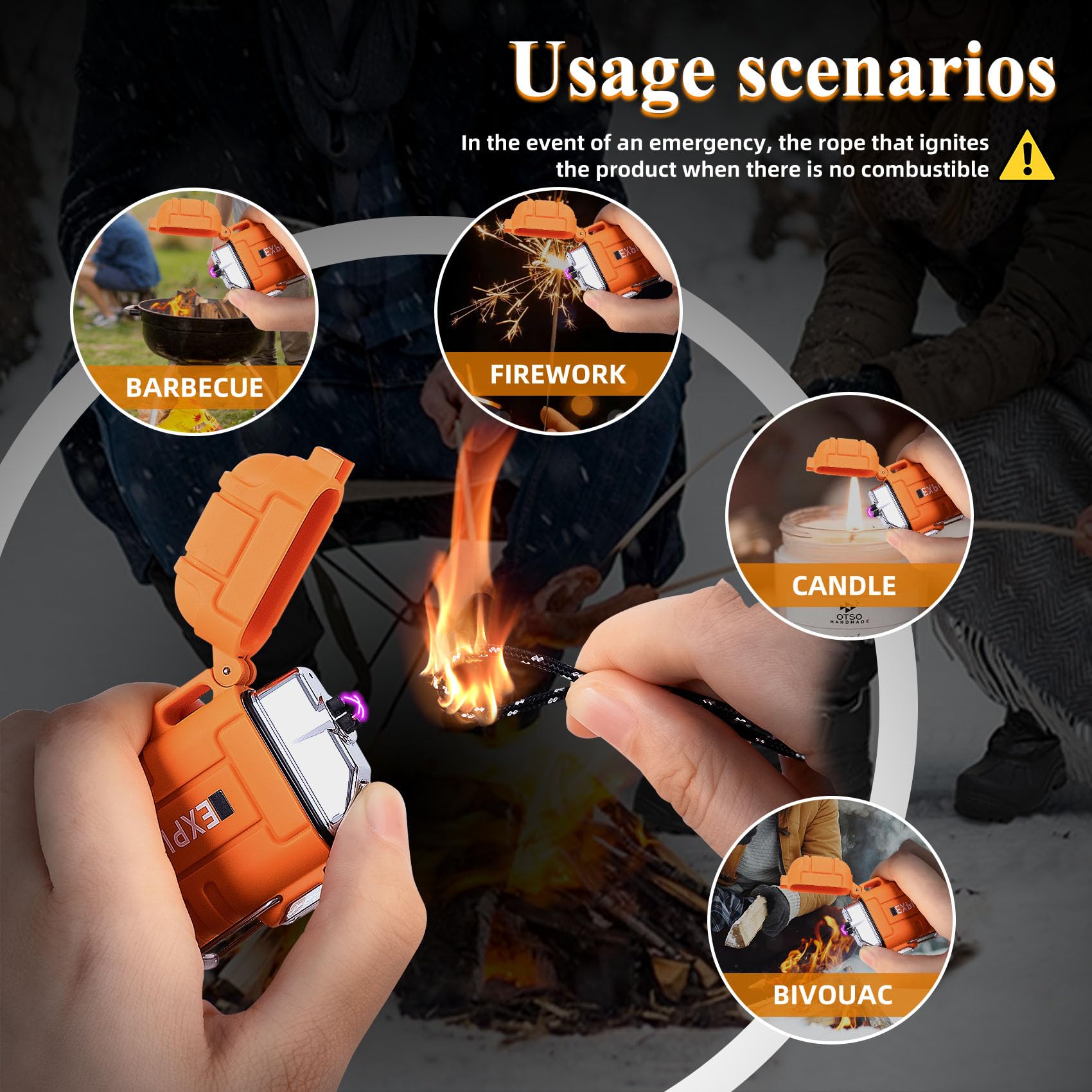 LcFun Electric Lighter - USB C Rechargeable, Windproof, Waterproof Flameless Dual Arc Plasma Lighters with Portable Lanyard for Adventure, Survival Tactical, Camping Gadgets for Men (Orange)