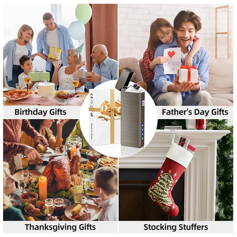 • Usb Rechargeable Lighter: Dual arc lighter built in a lithium battery which can be reused many times and have a longer service life than traditional lighters. With type c charging port, the indicator lights will flash one by one during charging, when all 4 lights are lit, it means the electric lighter is fully charged