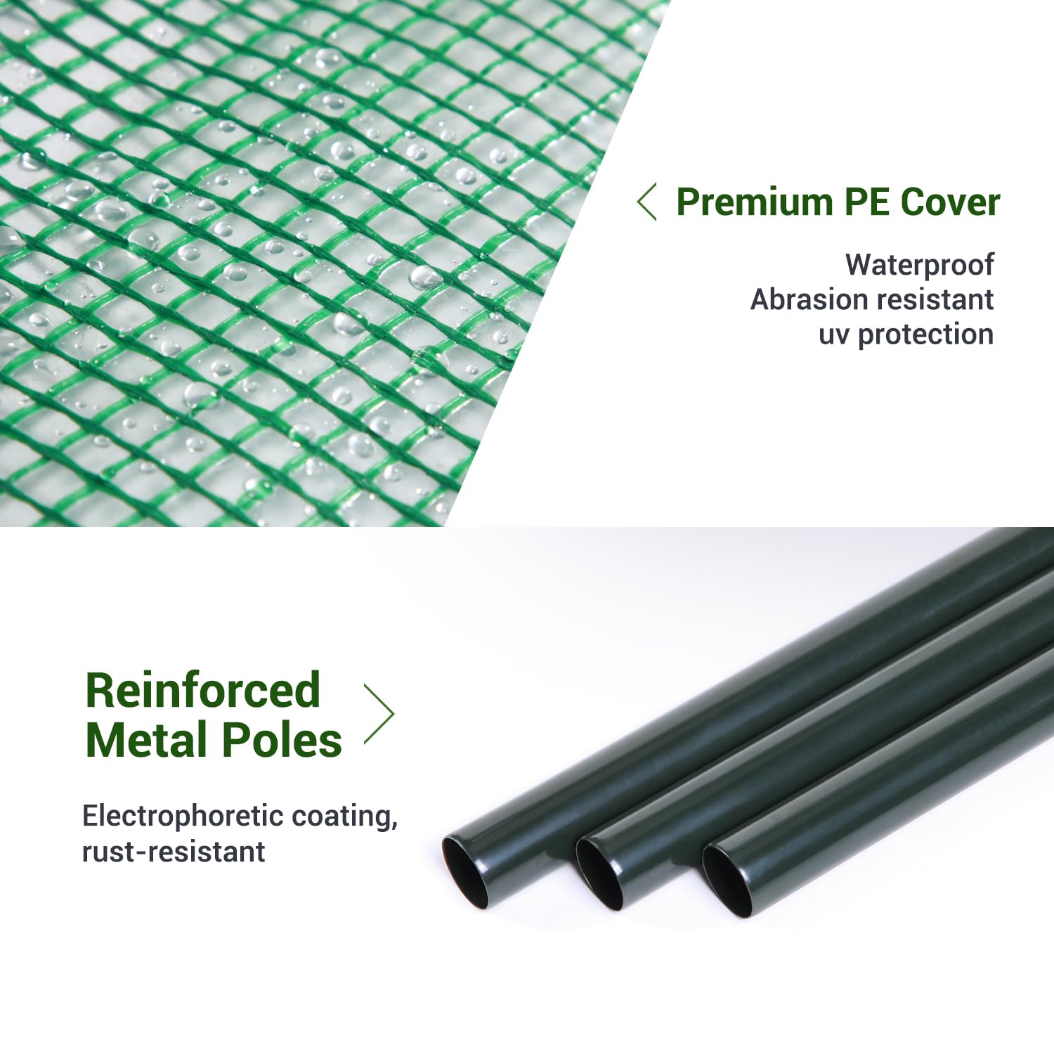 • Built to Last: The reinforced tear-resistant, waterproof, wear-resistant, corrosion-resistant, and UV-resistant PE mesh cloth ensures durability. Sturdy thickened tubes connected by PP plastic joints, along with reinforced side, back, and doorways, provide stability