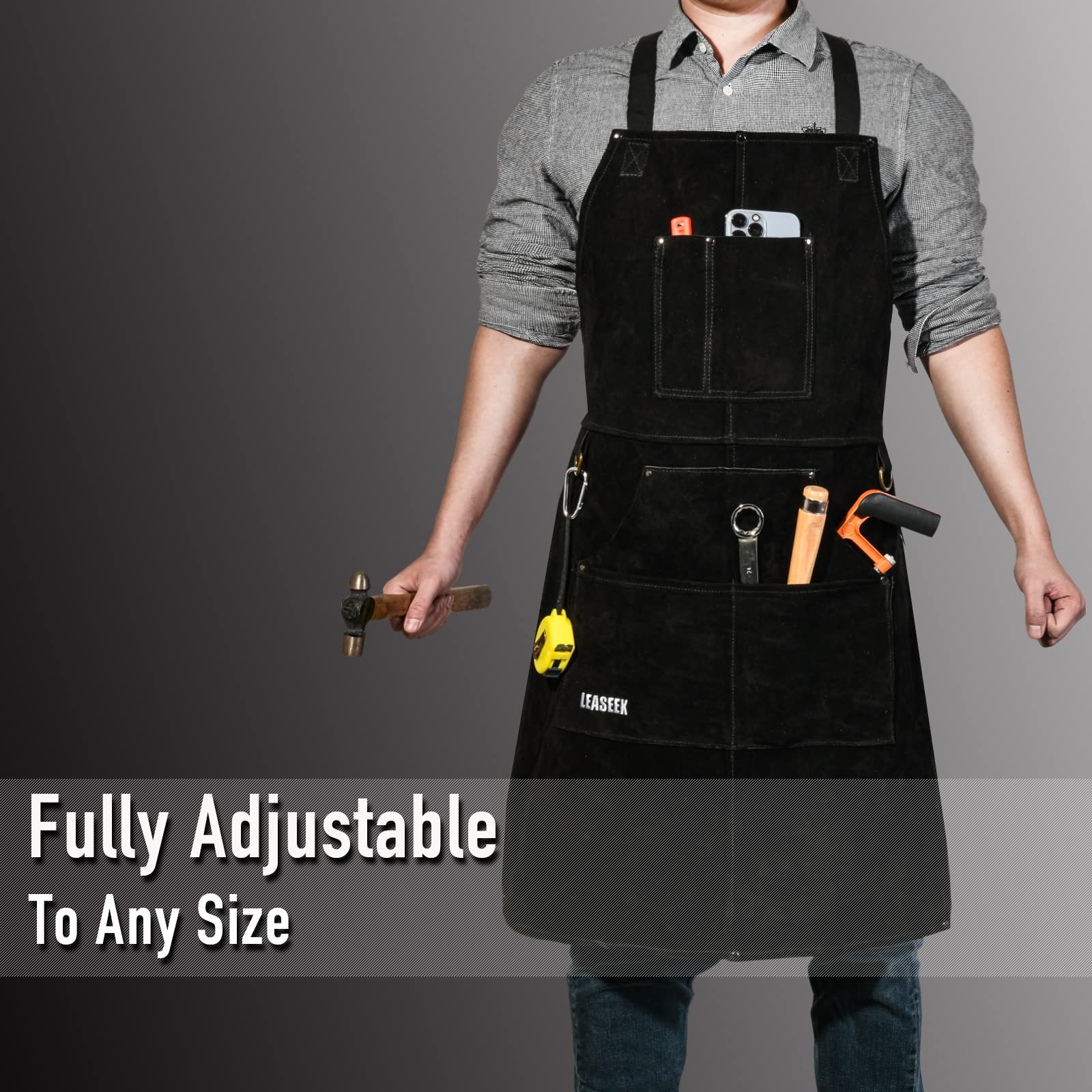 • Created for comfort: Our cross back strap design make you more comfortable at work. And quick release buckle design is quick and easy to wear. Customize your tool apron’s fit by adjusting the harness and waist.