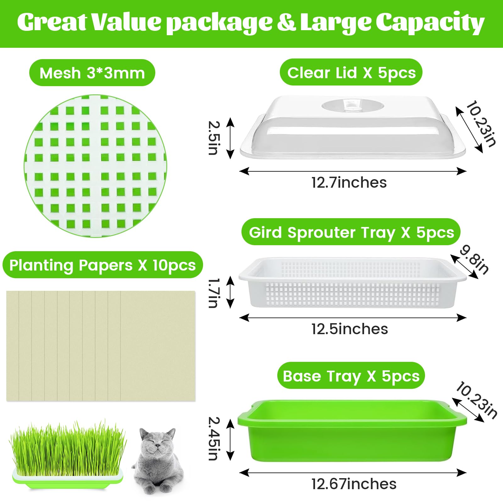 Legigo 5 Pack Seed Sprouter Trays with Lids- Soil-Free Cultivation Germination Tray, BPA Free Micro Greens Growing Trays Seed Sprouting Trays Kit with Germinating Paper for Wheatgrass, Beans and More