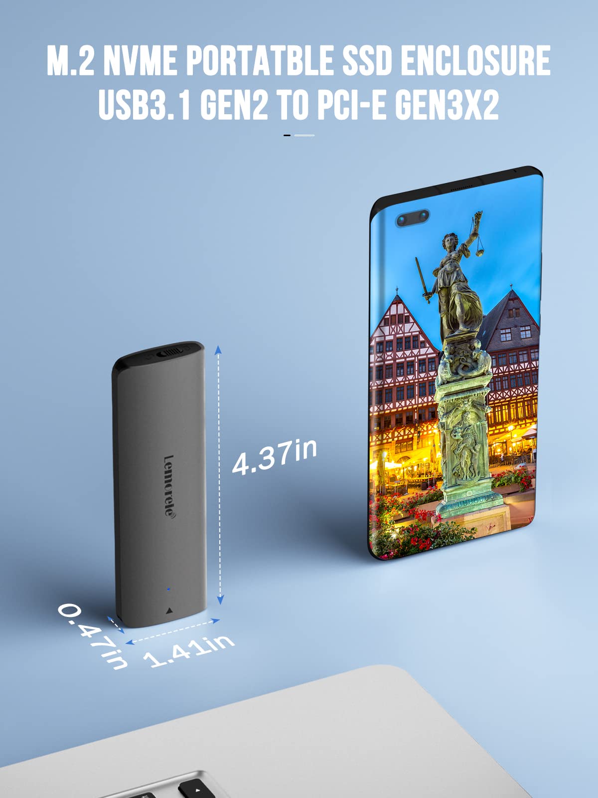 Lemorele M.2 NVMe Enclosure,USB 3.2 Gen2 10Gbps Tool-Free ,SSD Enclosure for NVMe PCIe M-Key,Nvme USB Adapter Support UASP Trim for 2280 2260 2242 2230(Sata NOT Supported)