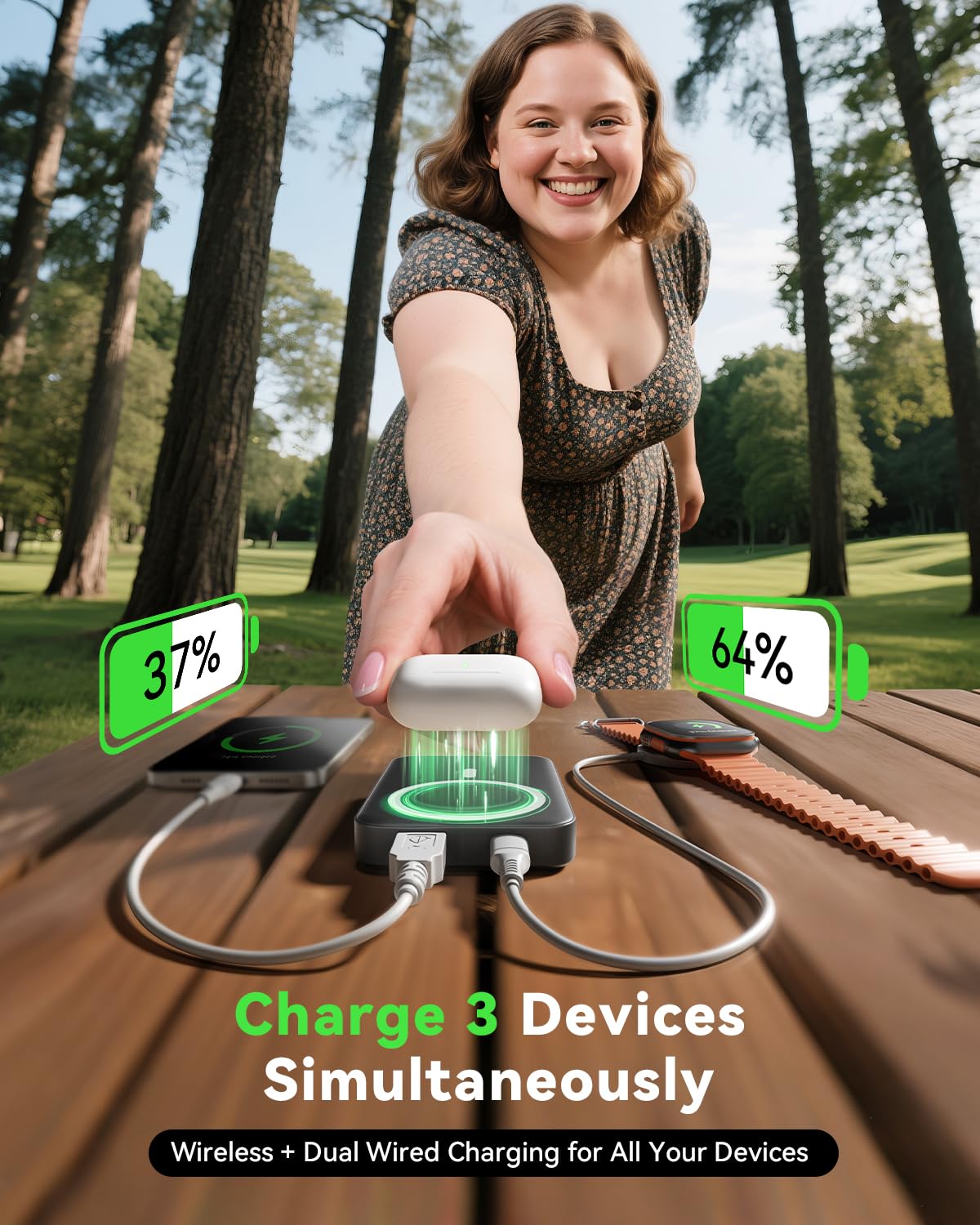 • 【Dual Output with Wide Compatibility】Supports for MagSafe iPhones and wireless-charging-capable phones (with magnetic ring).Dual-mode:use as a wireless MagSafe charger or plug in via USB-C to charge two devices simultaneously.