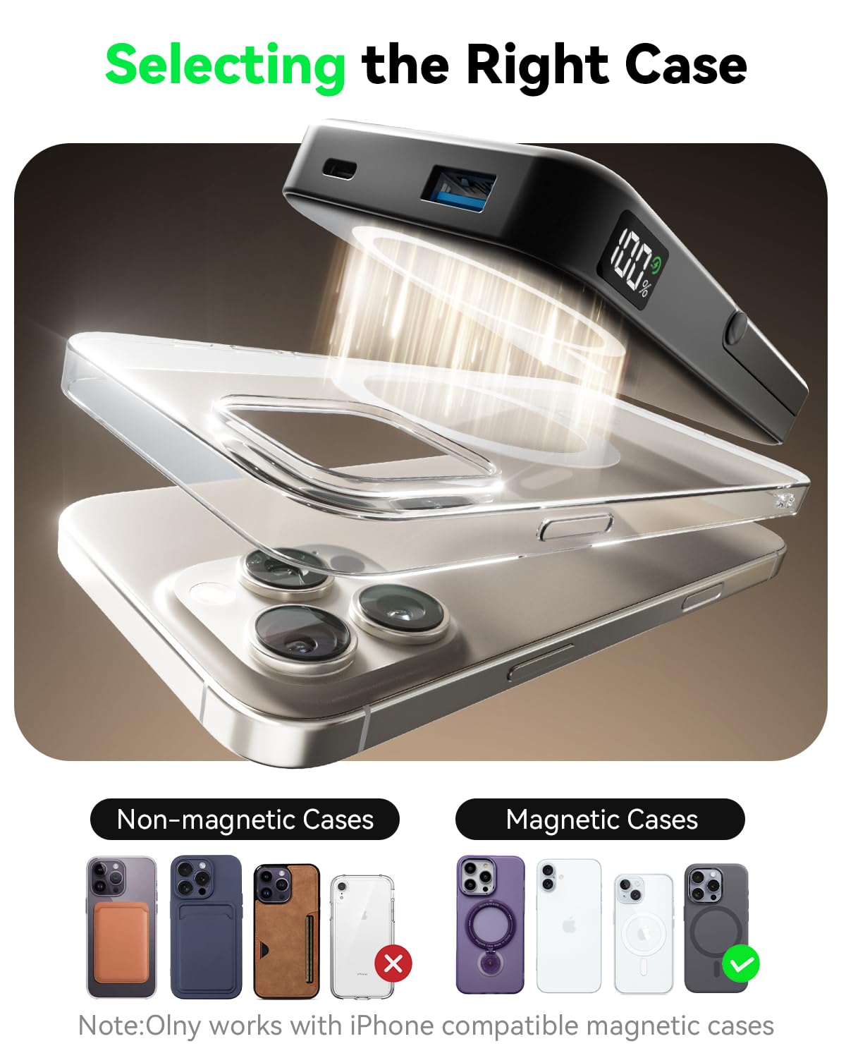• 【Strong Magnetic Charging for MagSafe】Snap and go with powerful built-in N52 magnets that align perfectly with iPhone 16/15/14/13/12 series.Designed for MagSafe battery pack use,ensuring secure,stable wireless charging even when you're on the move.No slipping,no repositioning—just effortless wireless power on the back of your iPhone.