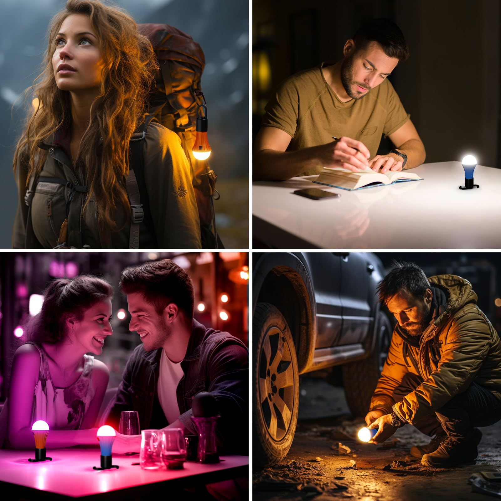 Lepro LED Rechargeable Camping Lantern, 7 White and RGB Light Modes, Camping Essentials, Hanging Light Bulbs with Clip Hook for Camping, Christmas, Decorations, Emergency, USB Cable Included, 2 Packs