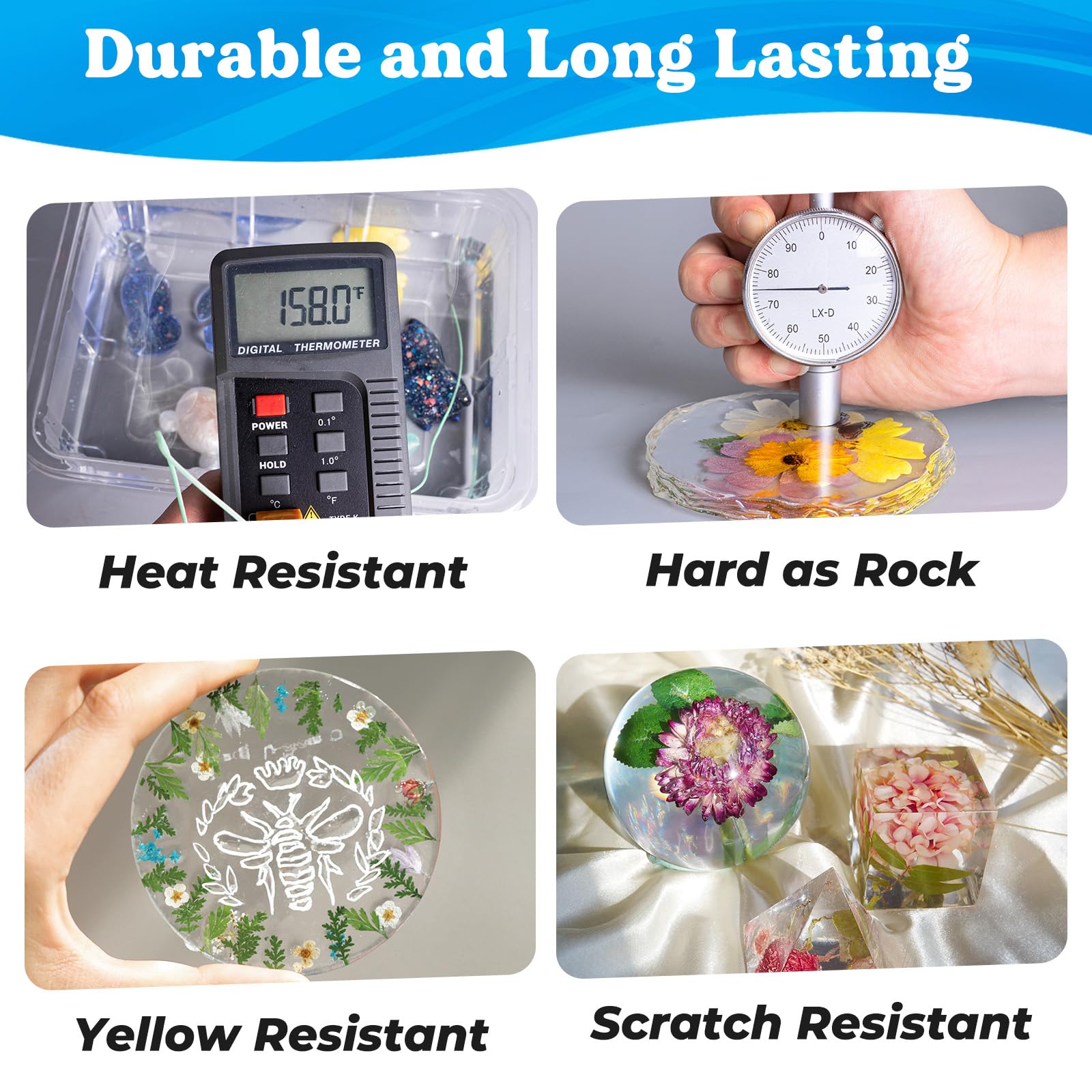 • Crystal Clear Epoxy Resin:This clear resin for craft can be mixed perfectly with any pigments and give the finished product a long-lasting, ultra-clear appearance without yellowing.Ideal for all casting, coating and art projects including jewelry, coasters,tumblers,resin art and acrylic pour paintings, molds, river tables. This makes it a good choice for gifts. It can be given as a present for occasions like Christmas, Valentine's Day, Mother's Day, birthdays, and more