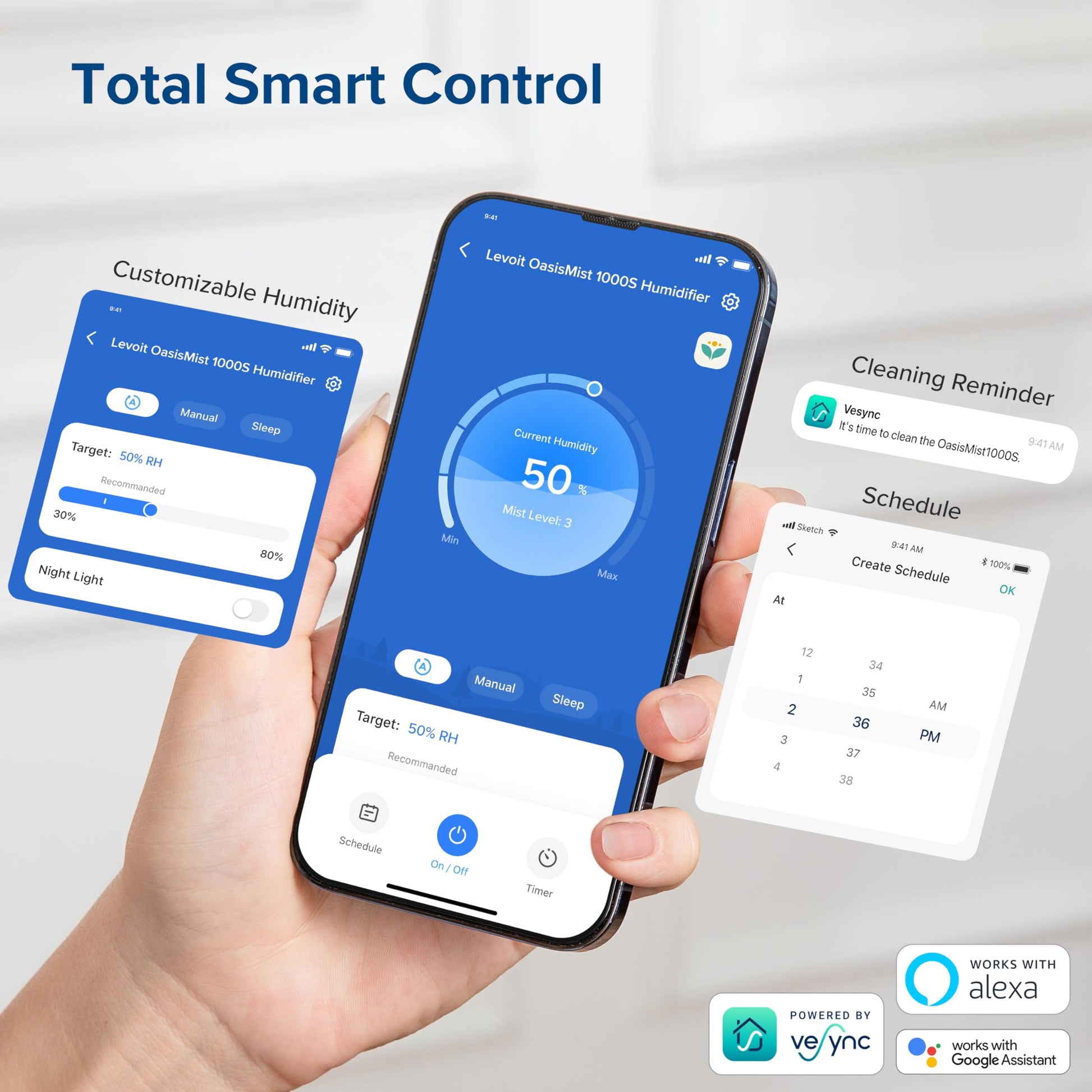 • ๐™€๐™›๐™›๐™ค๐™ง๐™ฉ๐™ก๐™š๐™จ๐™จ ๐™Ž๐™ข๐™–๐™ง๐™ฉ ๐˜พ๐™ค๐™ฃ๐™ฉ๐™ง๐™ค๐™ก: With the Vesync App, set schedules according to your routines, and customize humidity for your family. Create your personalized humidification plan