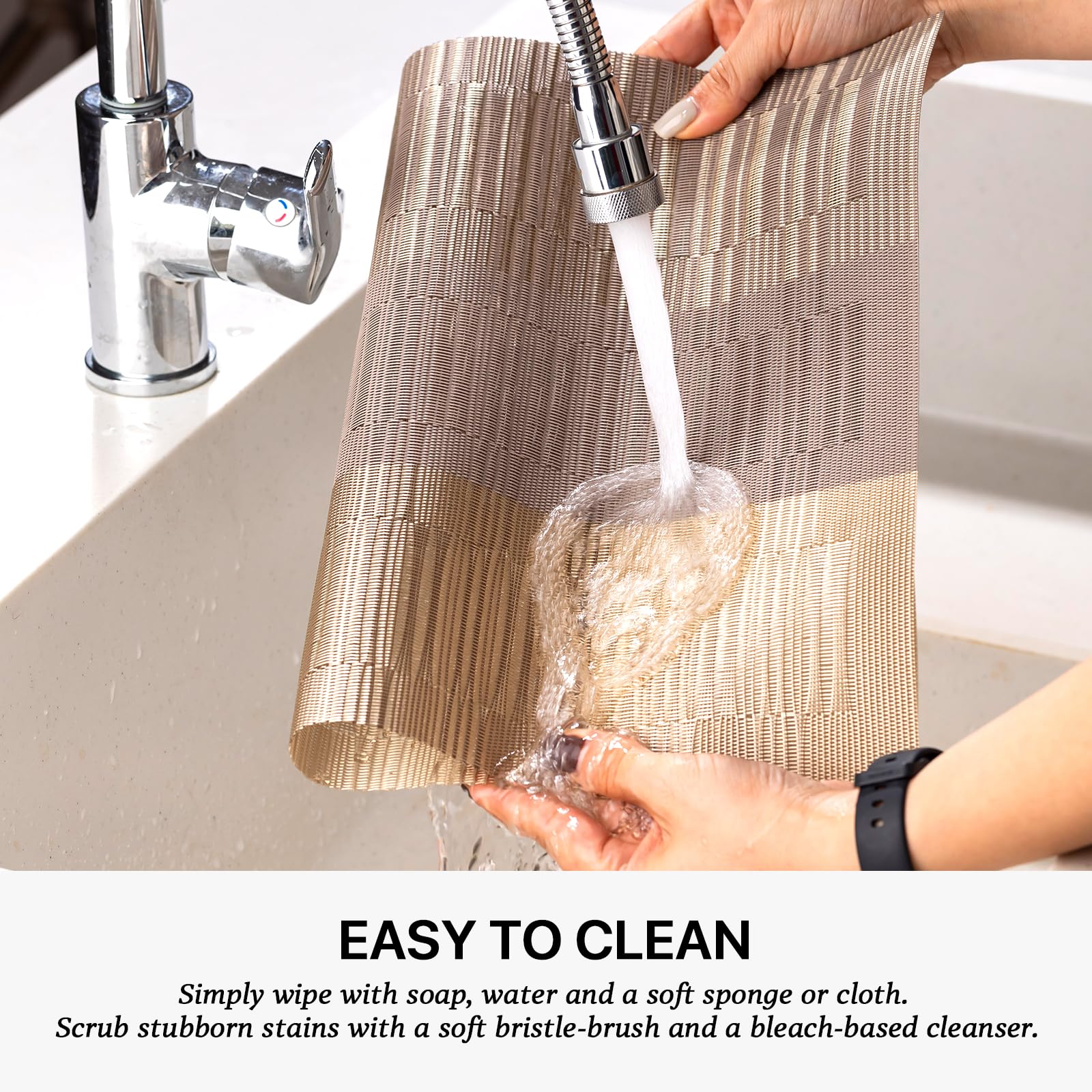 LEXMORE Placemats Set of 8 Vinyl/Plastic Woven Place Mats for Kitchen Table Indoor/Outdoor Washable Placemat Wipeable Dining Table Mats(Gold Dune)
