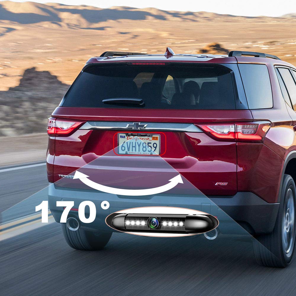 • HEAVY-DUTY LICENSE PLATE FRAME BACKUP CAMERA: Perfect for most of vehicles that use a standard US license plate. It is like a plate frame mounted on the license plate, holds the license plate securely without blocking the license plate info. Before buy, pls check your license plate size first