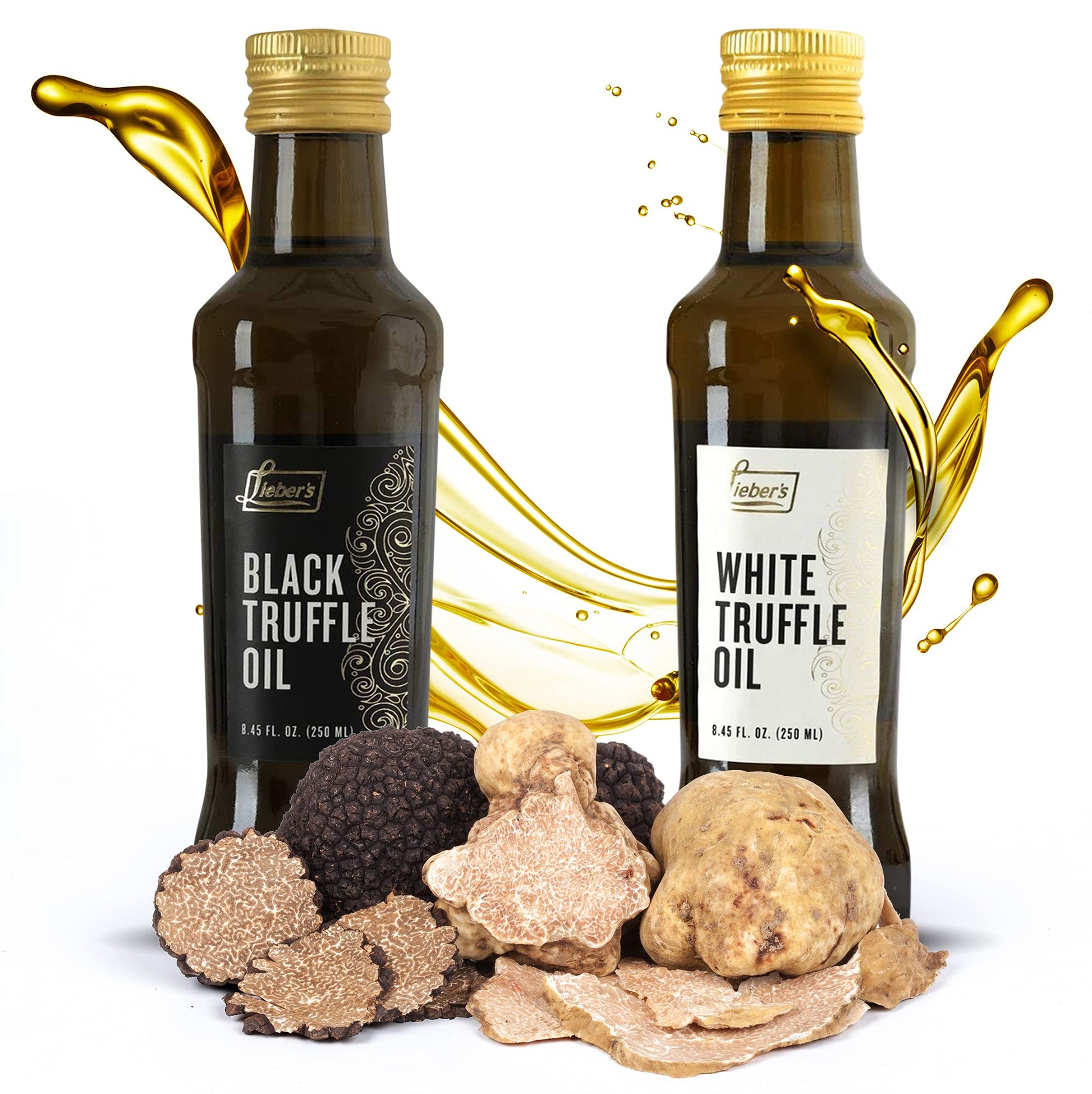 Lieber’s Black & White Truffle Oil Bundle | Premium Truffle Oil for Cooking, Salad Dressing, Garnish | This Gourmet Olive Oil Is Vegan, Vegetarian & Gluten Free | 8.45 Fl Oz Glass Bottle