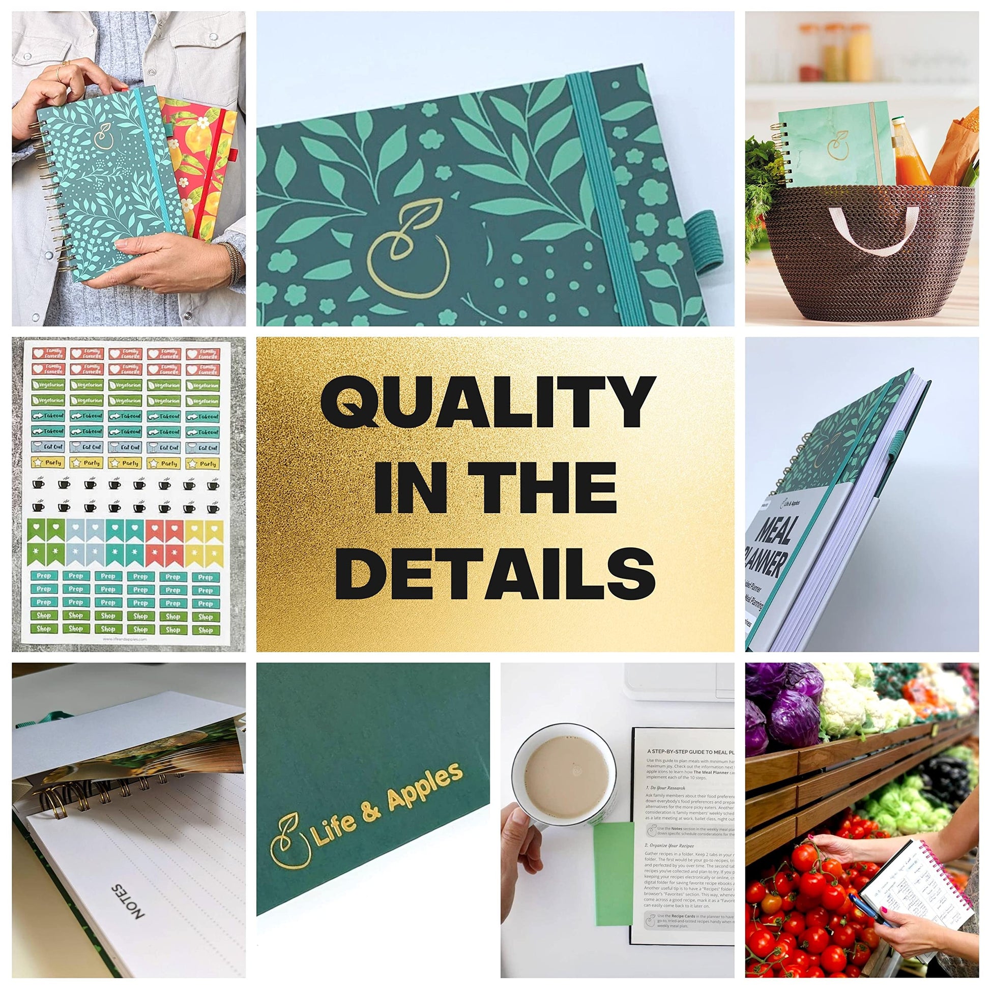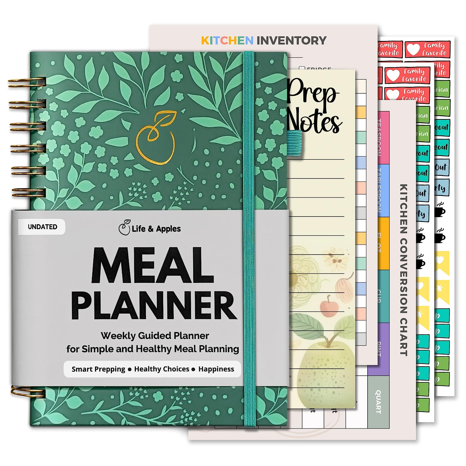 • PREMIUM QUALITY & COMPLETE SYSTEM – Spiral bound hardcover A5 notebook with 100gsm thick paper, inner pocket, elastic closure, and pen holder. Includes practical planning sheets (meal stickers, pantry inventory trackers, kitchen conversion chart), plus access to e-books with healthy recipes, tips, and templates.