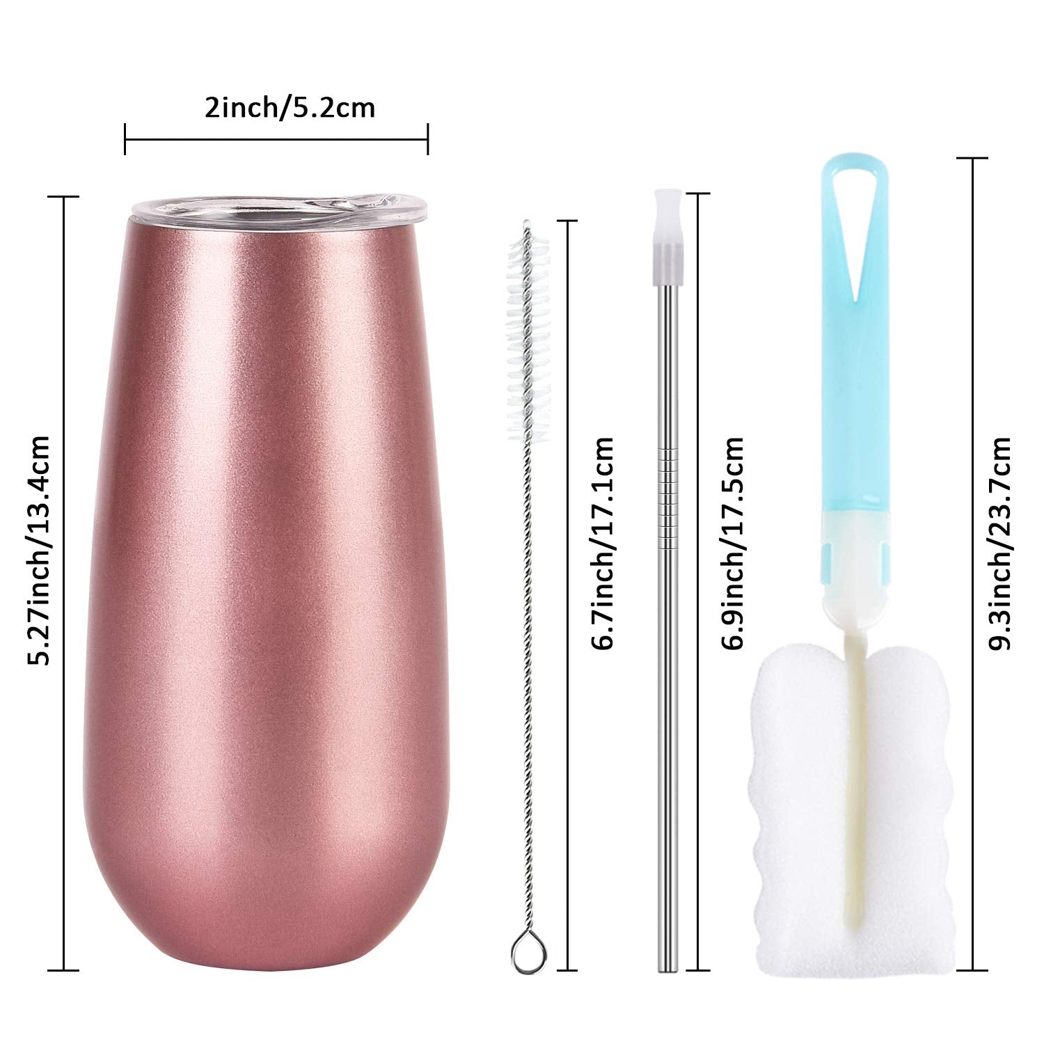 STYLISH DESIGNS: The 6 Oz capacity stemless champagne flutes tumbler especially for you to enjoy your champagne and cocktail . The lid is with a straw hole for easy sipping and reducing splash. Slim body for easy to hold. This elegantly designed wine tumbler giving you comfortable hand sense, and show your unique elegance in special occasions.