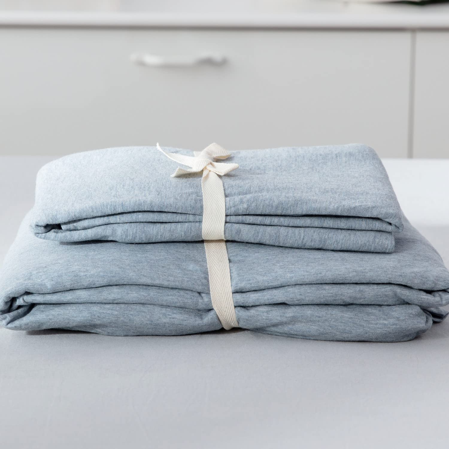 LIFETOWN 100% Jersey Knit Cotton Sheet, Extra Deep Pocket, 1 Fitted Sheet with 2 Pillowcases, Wrinkle-Free Ultra Soft (Heathered Greyish Blue, King)
