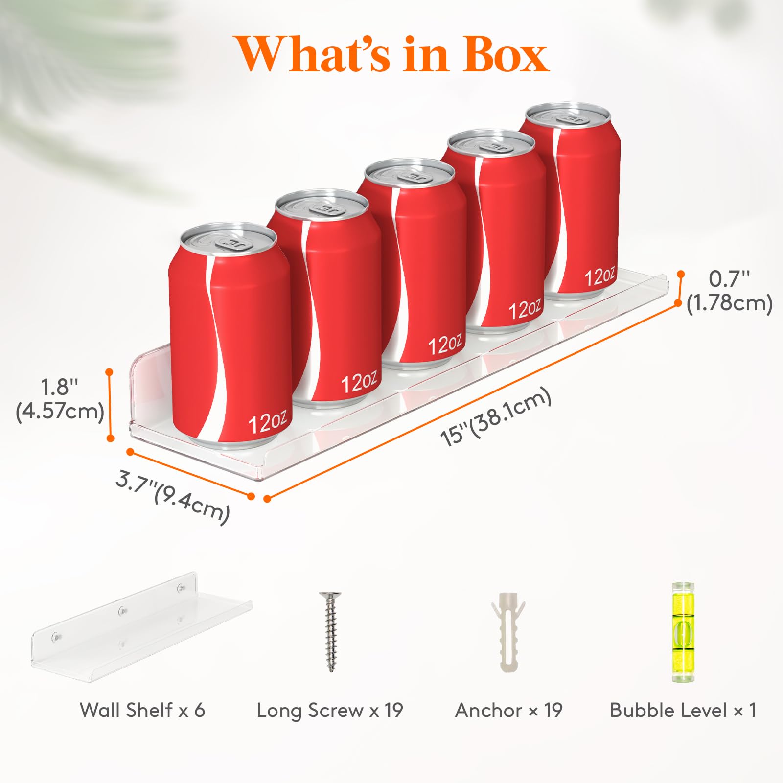 Lifewit Floating Shelves for Wall, 6 Pack 15" Clear Acrylic Shelf Room Decor for Book/Figures/Photo/Makeup in Bathroom, Book Shelf, Living Room, Bedroom, Kitchen Storage and Organization