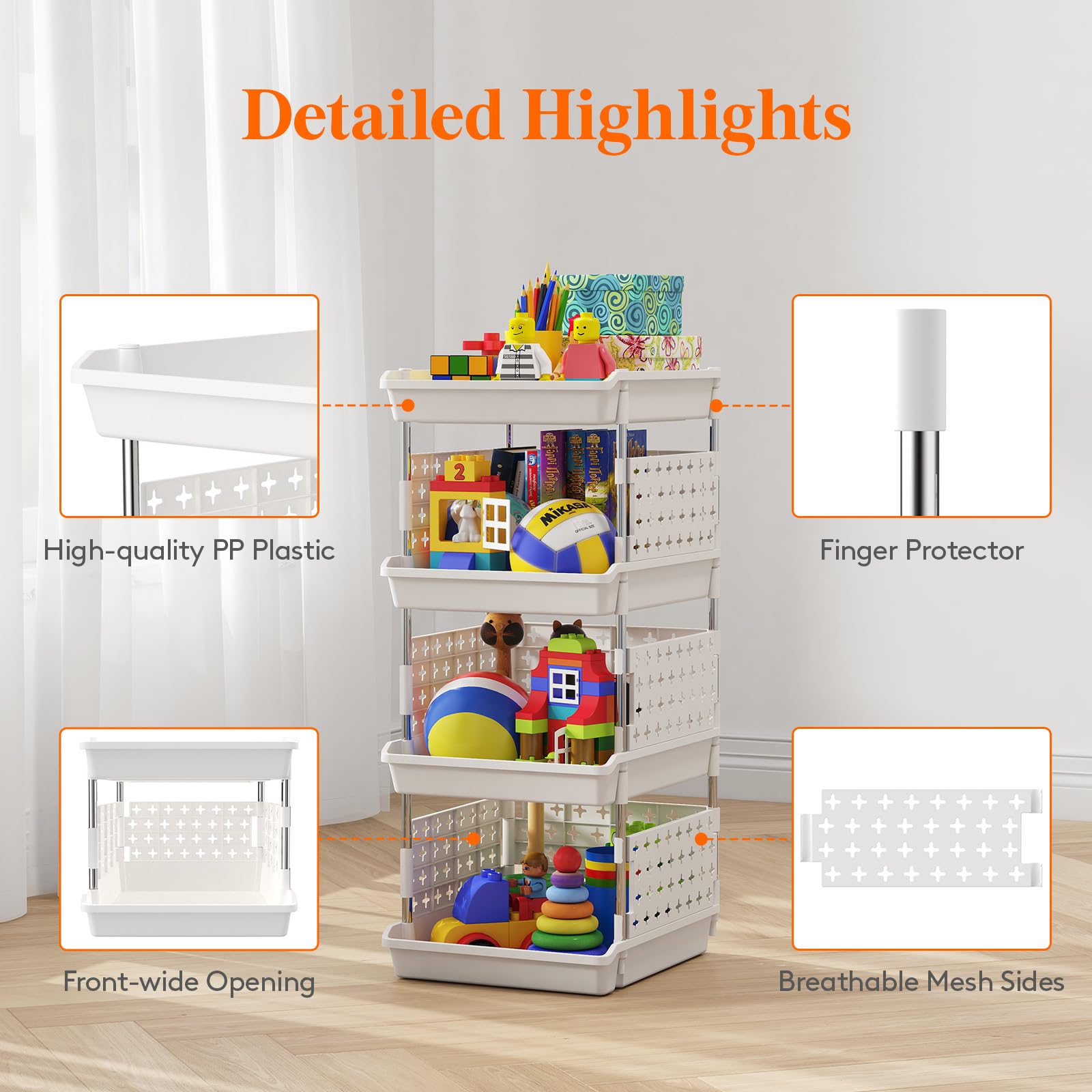 Lifewit Plastic Stackable Storage Baskets, 4 Tier Stacking Bins for Closet Wardrobe, Playroom, Kitchen and Pantry Organization, Large Capacity Multi-Functional Stackable Storage Containers Shelves