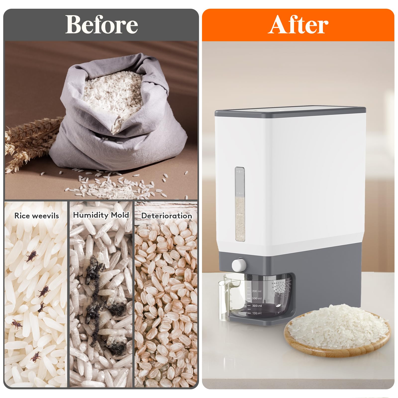 • Save Space: The rice dispenser is stylishly designed, and is suitable for a variety of home styles. With its compact design, it helps to keep your kitchen organized without taking up too much space.