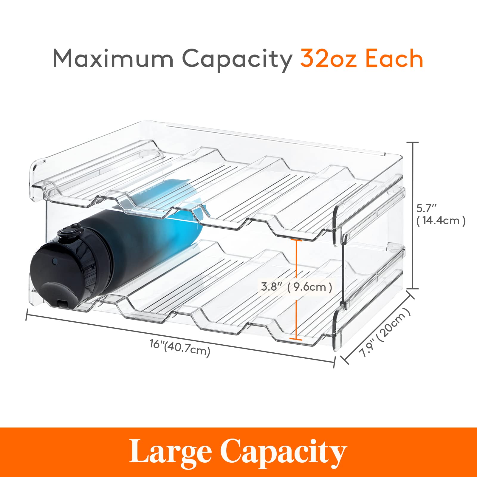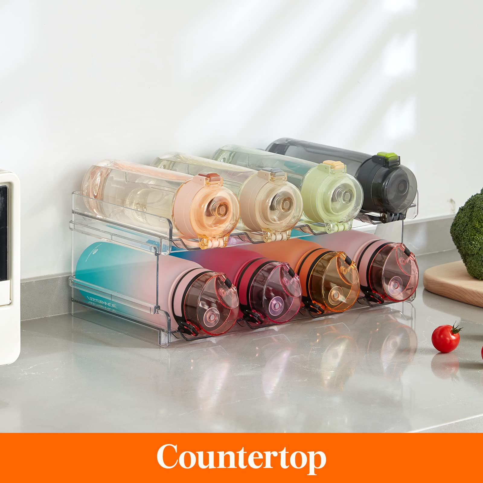 Lifewit Stackable Water Bottle Organizer/Holder for Cabinet Fridge, Kitchen Pantry Organization and Storage, Plastic Wine Racks, Tumbler Travel Mug Cup Holder, 2Pack, Hold 8 Bottles